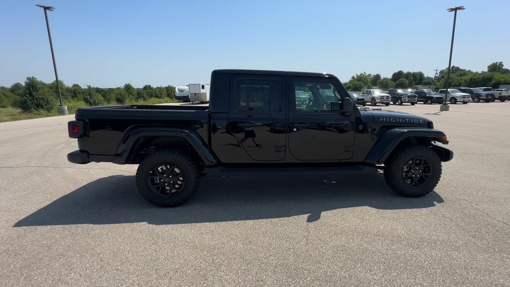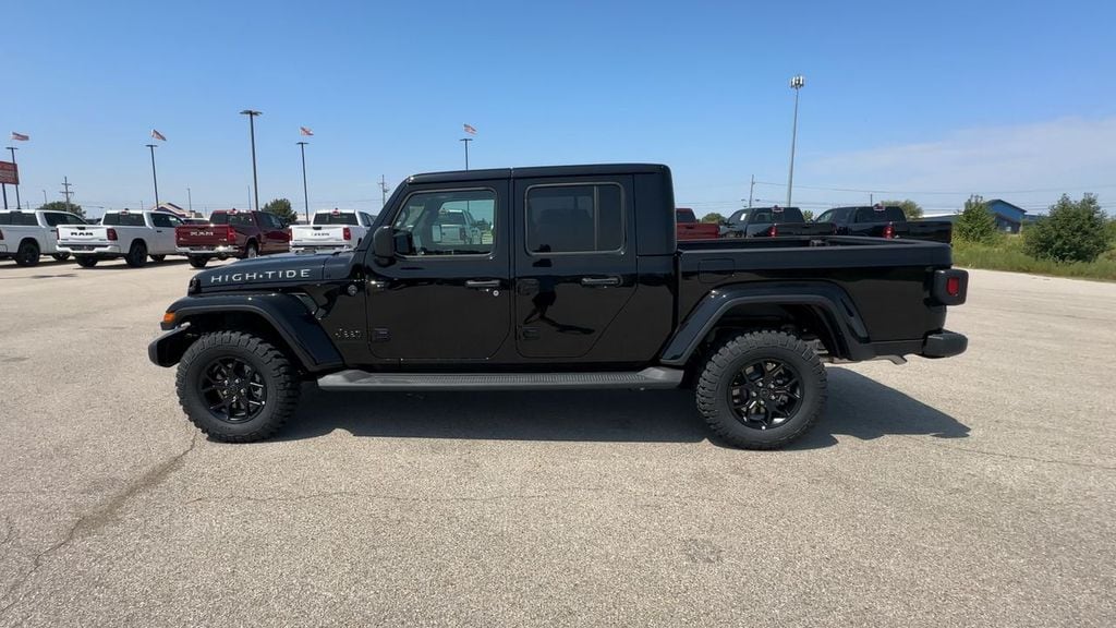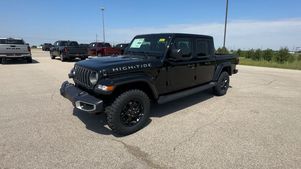 Black Clearcoat 2025 Jeep Gladiator High Tide 4WD 8-Speed Automatic 3.6L V6 24V VVT 97 MPH Vehicle Max Speed Calibration, Advanced Brake Assist, Automatic Headlamps, Body Color 3-Piece Hard Top, Body Color Fender Flares (2-Piece), Convenience Group, Corning Gorilla Glass, Daytime Running Lamp System, Deep Tint Sunscreen Windows, Emergency/Assistance Call, Freedom Panel Storage Bag, Front Door Locks 2-Door Passive Entry, Full Length Floor Console Premium Armrest, Full Speed Forward Collision Warning Plus, Hard Seat Back, Heated Front Seats, Heated Steering Wheel, High Tide, High Tide Tailgate & Hood Decals, Integrated Radar Camera Module (IRCM), Leather Wrapped Park Brake Handle, Leather Wrapped Shift Knob, Power 4-Way Driver Lumbar Adjust, Power 4-Way Passenger Lumbar Adjust, Power Adjust 8-Way Driver Seat, Power Adjust 8-Way Front Passenger Seat, Power Heated Mirrors, Premium Door Trim Panel, Premium McKinley Trimmed Seats, Premium Wrapped Steering Wheel, Quick Order Package 24Q High Tide, Rear Armrest w/Cupholder Seat, Rear Sliding Window, Rear Window Defroster, Remote Start System, Security Alarm, Sun Visors w/Illuminated Vanity Mirrors, Universal Garage Door Opener, Wheels: 17" x 7.5" Painted Black, Willys Suspension.