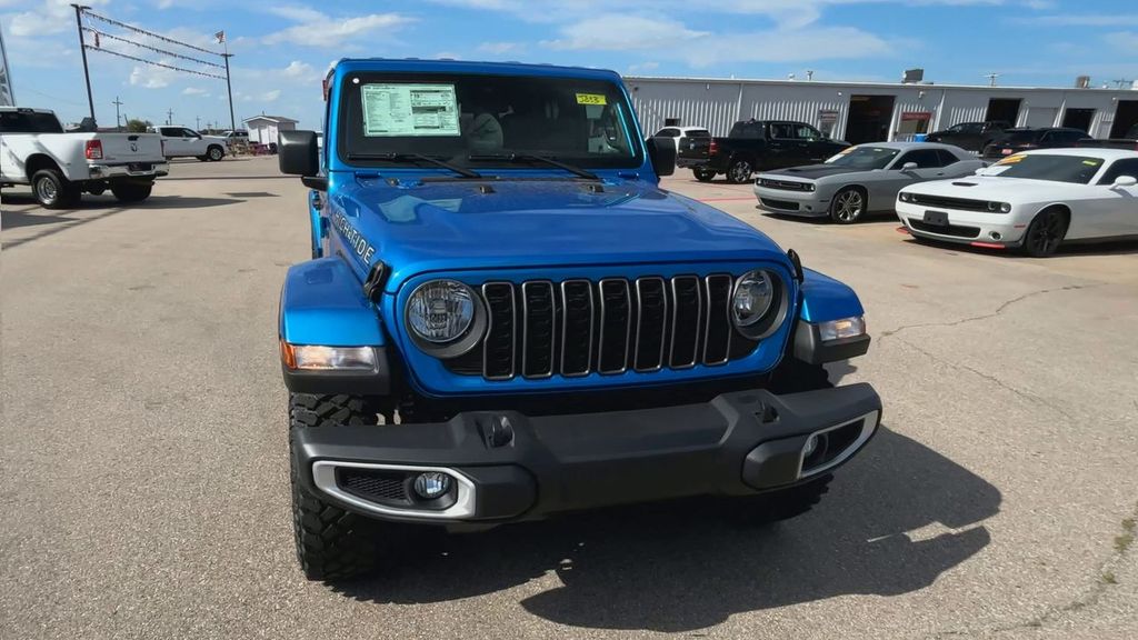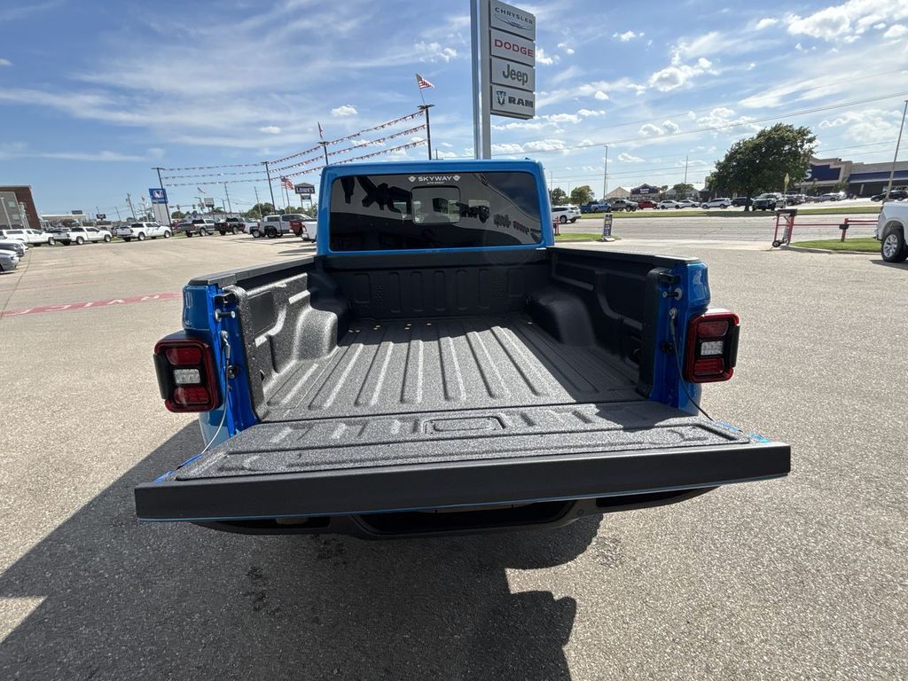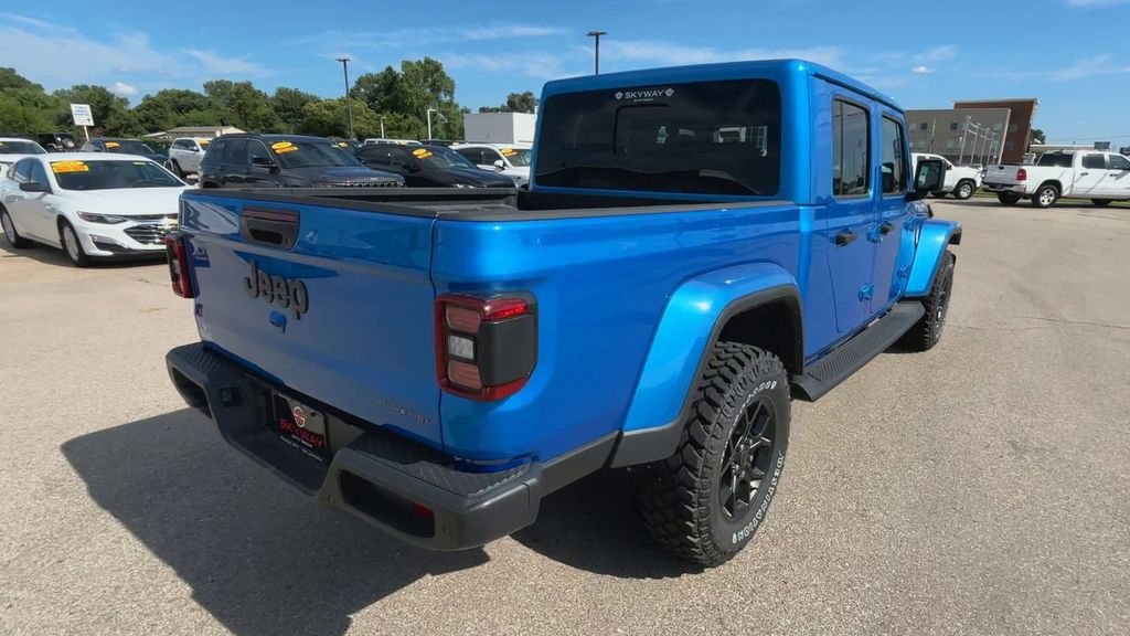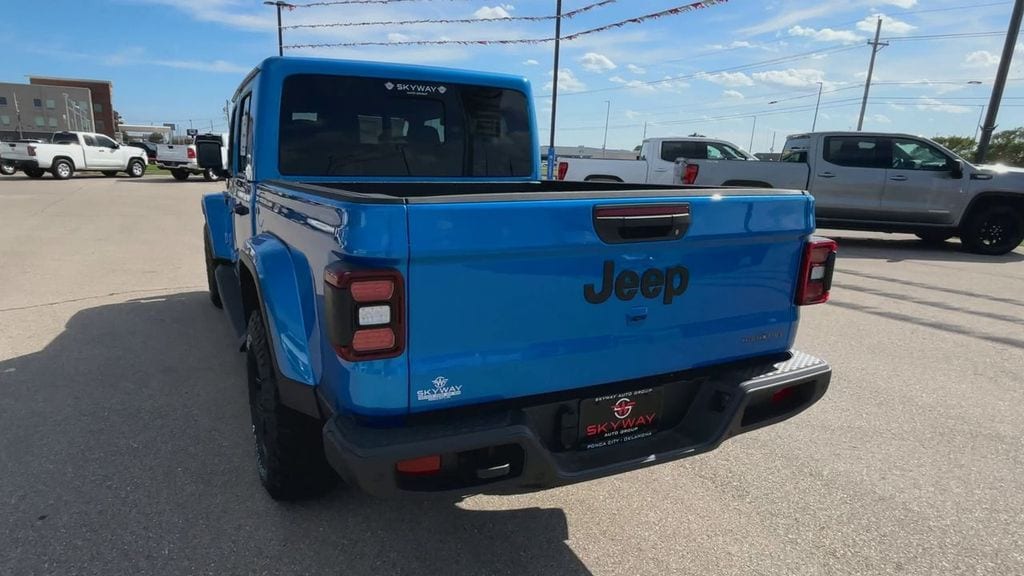 Hydro Blue Pearlcoat 2025 Jeep Gladiator High Tide 4WD 8-Speed Automatic 3.6L V6 24V VVT 97 MPH Vehicle Max Speed Calibration, Advanced Brake Assist, Auto High Beam Headlamp Control, Automatic Headlamps, Blind Spot & Cross Path Detection, Body Color 3-Piece Hard Top, Body Color Fender Flares (2-Piece), Convenience Group, Corning Gorilla Glass, Daytime Running Lamp System, Deep Tint Sunscreen Windows, Emergency/Assistance Call, Freedom Panel Storage Bag, Front Door Locks 2-Door Passive Entry, Full Length Floor Console Premium Armrest, Full Speed Forward Collision Warning Plus, Hard Seat Back, Heated Front Seats, Heated Steering Wheel, High Tide, High Tide Tailgate & Hood Decals, Integrated Radar Camera Module (IRCM), Leather Wrapped Park Brake Handle, Leather Wrapped Shift Knob, LED Taillamps, ParkSense Rear Park Assist System, Power 4-Way Driver Lumbar Adjust, Power 4-Way Passenger Lumbar Adjust, Power Adjust 8-Way Driver Seat, Power Adjust 8-Way Front Passenger Seat, Power Heated Mirrors, Premium Door Trim Panel, Premium McKinley Trimmed Seats, Premium Wrapped Steering Wheel, Quick Order Package 24Q High Tide, Rear Armrest w/Cupholder Seat, Rear Sliding Window, Rear Window Defroster, Remote Start System, Safety Group, Security Alarm, Sun Visors w/Illuminated Vanity Mirrors, Universal Garage Door Opener, Wheels: 17" x 7.5" Painted Black, Willys Suspension.