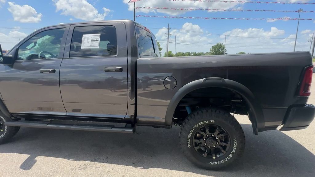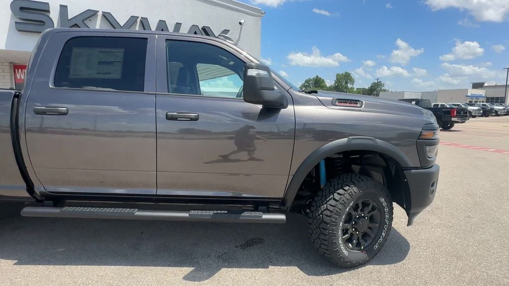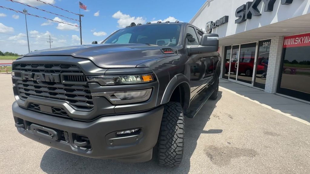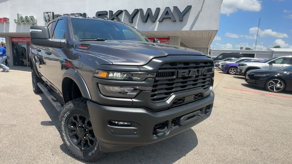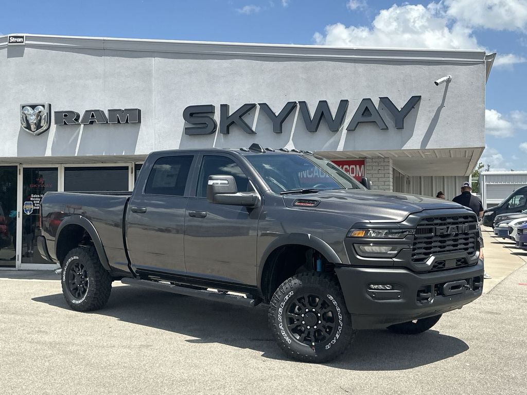 Granite Crystal Metallic Clearcoat 2025 Ram 2500 Tradesman 4WD 8-Speed Automatic 6.4L V8 115V Auxiliary Front Power Outlet, 12" Touchscreen Display, 2 Way Rear Headrest Seat, 4 Way Front Headrests, 4.10 Axle Ratio, 40/20/40 Split Bench Seat, 400W Inverter, 4G LTE Wi-Fi Hot Spot, Air Conditioning ATC w/Dual Zone Control, Alexa Built-In, Anti-Spin Differential Rear Axle, Apple CarPlay, Auto-Dimming Rear-View Mirror, Base Engine Controller, Bed Convenience Group, Black Exterior Mirrors, Black Wheel Center Hub, Black Wheel Flares, Carpet Floor Covering, Cloth 40/20/40 Bench Seat, Connected Travel & Traffic Services, Connectivity - US/Canada, Disassociated Touchscreen Display, Emergency Vehicle Alert System (EVAS), Exterior 115V AC Outlet, Exterior Mirrors Courtesy Lamps, Exterior Mirrors w/Heating Element, Exterior Mirrors w/Supplemental Signals, Front & Rear Floor Mats, Front Armrest w/Cupholders, Front Disconnecting Stabilizer Bar, Front Electric Winch, Front Performance Tuned Shock Absorbers, Fuel Tank Skid Plate Shield, Global Telematics Box Module (TBM), Google Android Auto, GPS Antenna Input, GPS Navigation, HD Radio, Hill Descent Control, Integrated Voice Command w/Bluetooth, LED Bed Lighting, Manual Adjust 4-Way Driver Seat, Manual Adjust 4-Way Front Passenger Seat, Manual Folding Exterior Mirrors, Manual Telescoping Mirrors, Mirror Running Lights, Mopar Black Tubular Side Steps, MOPAR Spray In Bedliner, Off-Road Info Pages, ParkSense Front/Rear Park Assist System, Powder Coated Front Bumper, Powder Coated Rear Bumper, Power Adjust Mirrors, Power Adjustable Convex Aux Mirrors, Power Heated Folding Telescope Mirrors, Power Wagon Package (DISC), Quick Order Package 2UA Tradesman, Radio: Uconnect 5 Nav w/12.0" Display, Raised Ride Height, RAM Articulink Suspension, Rear Folding Seat, Rear Performance Tuned Shock Absorbers, Rear Power Sliding Window, Rear Wheelhouse Liners, Remote USB Port - Charge Only, Selectable Tire Fill Alert, SiriusXM Radio Service, SiriusXM w/360L, Storage Tray, Tinted Acoustic Windshield Glass, Tradesman Level 1 Equipment Group, Trailer Tow Pages, Tru-Lok Front & Rear Axles, Wheels: 17" x 8.0" Black Painted Aluminum (DISC).