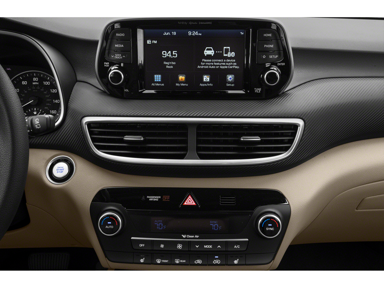 - Radio: Infinity Audio System -inc: 315-Watt, 7" color touchscreen, 8 speakers, Clari-Fi music restoration technology, external amplifier, Blue Link Connected Car Care System, HD Radio, Bluetooth® hands-free phone system, iPod/USB auxiliary input jacks, Apple CarPlay & Android Auto, SirusXM radio, BlueLink and voice recognition