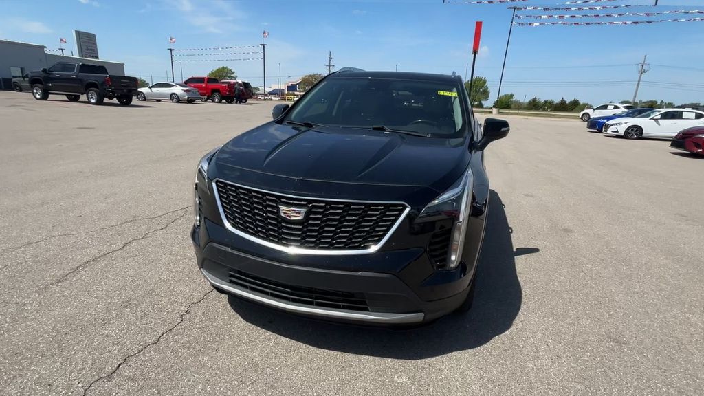 Premium!!, XT4 Premium Luxury, 4D Sport Utility, 2.0L I4 Turbocharged, FWD, Stellar Black Metallic, Jet Black w/Leather Seating Surfaces w/Mini-Perforated Inserts, 2-Way Driver Seat Power Lumbar Control, 2-Way Passenger Seat Power Lumbar Control, 3.47 Axle Ratio, 4-Wheel Disc Brakes, 4.2" Diagonal Color Display Driver Info Center, 6-Way Power Passenger Seat Adjuster, 7 Speakers, 7-Speaker Audio System w/Auxiliary Amplifier, 8-Way Power Driver Seat Adjuster, ABS brakes, Air Conditioning, Alloy wheels, AM/FM radio: SiriusXM, Apple CarPlay/Android Auto, Auto-dimming door mirrors, Auto-Dimming Inside Rear-View Mirror, Auto-dimming Rear-View mirror, Automatic Emergency Braking, Automatic temperature control, Bose Centerpoint Surround Sound 13-Speaker System, Brake assist, Bumpers: body-color, Cargo Liner (LPO), Cold Weather Package, Compass, Cruise Control w/Set & Resume Speed, Delay-off headlights, Driver Awareness Package, Driver door bin, Driver vanity mirror, Dual front impact airbags, Dual front side impact airbags, Dual Panel Glass Sunroof w/Power Tilt/Sliding, Electronic Stability Control, Emergency communication system: OnStar and Cadillac connected services capable, Exterior Parking Camera Rear, Following Distance Indicator, Four wheel independent suspension, Front & Rear All-Weather Floor Mats, Front & Rear Park Assist, Front anti-roll bar, Front Bucket Seats, Front Center Armrest, Front dual zone A/C, Front reading lights, Fully automatic headlights, Garage door transmitter, HD Radio, HD Rear Vision Camera, Heated Automatic Steering Wheel, Heated door mirrors, Heated Driver & Front Passenger Seats, Heated Rear Outboard Seating Positions, Illuminated entry, IntelliBeam Automatic High Beam Control, Interior Protection Package (LPO), Knee airbag, Lane Keep Assist w/Lane Departure Warning, Leather Seating Surfaces, Leather steering wheel, Low tire pressure warning, Manual Rake & Telescopic Steering Column, Memory seat, Navigation System, Occupant sensing airbag, Outside temperature display, Overhead airbag, Overhead console, Panic alarm, Passenger door bin, Passenger vanity mirror, Power door mirrors, Power driver seat, Power Liftgate, Power passenger seat, Power steering, Power windows, Preferred Equipment Group 1SD, Radio data system, Radio: Cadillac User Experience AM/FM Stereo, Radio: Cadillac User Experience w/Embedded Nav, Rain sensing wipers, Rear anti-roll bar, Rear reading lights, Rear seat center armrest, Rear window defroster, Rear window wiper, Remote keyless entry, Roof rack: rails only, SD Card Reader, Security system, SiriusXM w/360L, Speed control, Speed-sensing steering, Split folding rear seat, Spoiler, Standard Suspension, Steering wheel mounted audio controls, Tachometer, Telescoping steering wheel, Tilt steering wheel, Traction control, Trip computer, Turn signal indicator mirrors, Variably intermittent wipers, Voltmeter, Wheels: 18" 10-Spoke Pearl Nickel Finish Alloy, Wheels: 20" Dynamic 9-Spoke Alloy, Wireless Apple CarPlay/Wireless Android Auto, Wireless Phone Charging (LPO).