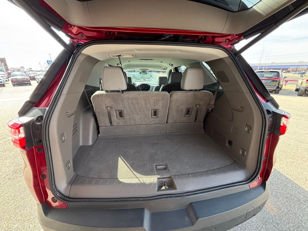 3.49 Axle Ratio, 3rd row seats: split-bench, 4-Wheel Disc Brakes, 6 Speakers, 7-Passenger Seating (2-2-3 Seating Configuration), ABS brakes, Air Conditioning, Alloy wheels, AM/FM radio: SiriusXM, Apple CarPlay/Android Auto, Automatic temperature control, Brake assist, Bumpers: body-color, Compass, Delay-off headlights, Driver door bin, Driver vanity mirror, Dual front impact airbags, Dual front side impact airbags, Electronic Stability Control, Emergency communication system: OnStar and Chevrolet connected services capable, Four wheel independent suspension, Front anti-roll bar, Front Bucket Seats, Front Center Armrest, Front dual zone A/C, Front fog lights, Front License Plate Bracket Mounting Package, Front reading lights, Fully automatic headlights, Garage door transmitter, Heated door mirrors, Heated front seats, High-Intensity Discharge Headlights, Illuminated entry, Leather steering wheel, Leather-Appointed Seat Trim, Low tire pressure warning, Occupant sensing airbag, Outside temperature display, Overhead airbag, Overhead console, Panic alarm, Passenger door bin, Passenger vanity mirror, Power door mirrors, Power driver seat, Power Liftgate, Power passenger seat, Power steering, Power windows, Preferred Equipment Group 3LT, Premium audio system: Chevrolet MyLink, Radio data system, Radio: Chevrolet Infotainment 3 Plus System, Rear air conditioning, Rear anti-roll bar, Rear reading lights, Rear window defroster, Rear window wiper, Remote keyless entry, Roof rack: rails only, Security system, SiriusXM w/360L, Speed control, Speed-sensing steering, Spoiler, Steering wheel mounted audio controls, Tachometer, Telescoping steering wheel, Tilt steering wheel, Traction control, Trip computer, Turn signal indicator mirrors, Variably intermittent wipers, Voltmeter, Wheels: 18" Bright Silver Painted Aluminum.