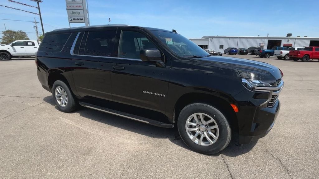 Great Family Vehicle!!, Suburban LT, 4D Sport Utility, EcoTec3 5.3L V8, RWD, Black, Jet Black w/Leather-Appointed Seating, 10-Way Power Driver & Passenger Seat Adjusters, 1st & 2nd Row Color-Keyed Carpeted Floor Mats, 3.23 Rear Axle Ratio, 3rd row seats: split-bench, 4-Wheel Disc Brakes, 9 Speakers, ABS brakes, Air Conditioning, Alloy wheels, AM/FM radio: SiriusXM with 360L, Apple CarPlay/Android Auto, Auto High-beam Headlights, Auto-Dimming Inside Rear-View Mirror, Auto-dimming Rear-View mirror, Automatic temperature control, Bose 9-Speaker Stereo Audio System Feature, Brake assist, Bright Front & Rear Door Sill Plates, Bumpers: body-color, Color-Keyed Carpeting Floor Covering, Compass, Delay-off headlights, Deleted 3 Years of Remote Access, Driver & Front Outboard Passenger Airbags, Driver door bin, Driver vanity mirror, Dual front impact airbags, Dual front side impact airbags, Electronic Stability Control, Emergency communication system: OnStar and Chevrolet connected services capable, Enhanced Driver Information Center, Floor Console w/Storage Area, Four wheel independent suspension, Front anti-roll bar, Front Bucket Seats, Front Center Armrest, Front dual zone A/C, Front reading lights, Fully automatic headlights, Garage door transmitter, Hands-Free Rear Power Programmable Liftgate, Heated door mirrors, Heated Driver & Front Passenger Seats, Heated front seats, Illuminated entry, Infotainment Display, Leather-Appointed Seating, LED Daytime Running Lamps, Low tire pressure warning, Memory seat, Memory Settings For Driver, Navigation System, Occupant sensing airbag, Outside temperature display, Overhead airbag, Overhead console, Panic alarm, Passenger door bin, Passenger vanity mirror, Power door mirrors, Power driver seat, Power Liftgate, Power passenger seat, Power steering, Power windows, Preferred Equipment Group 1LT, Premium audio system: Chevrolet Infotainment 3 Premium, Premium Smooth Ride Suspension, Radio: Chevrolet Infotainment 3 Premium System, Rain sensing wipers, Rear air conditioning, Rear anti-roll bar, Rear reading lights, Rear seat center armrest, Rear window defroster, Rear window wiper, Remote keyless entry, Remote Start, Roof rack: rails only, Security system, SiriusXM Radio w/360L, Speed control, Speed-sensing steering, Split folding rear seat, Spoiler, Steering wheel mounted audio controls, Tachometer, Telescoping steering wheel, Tilt steering wheel, Traction control, Trip computer, Universal Home Remote, Variably intermittent wipers, Voltmeter, Wheels: 18" x 8.5" Bright Silver Painted Aluminum, Wireless Charging, Wrapped Steering Wheel.