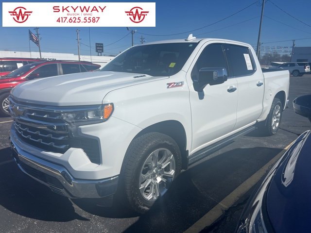 CARFAX One-Owner. LTZ Silverado 1500 LTZ, 4D Crew Cab, 3.0L I6, 10-Speed Automatic, 4WD, Summit White, Black Leather, 10-Way Power Driver Seat w/Lumbar, 10-Way Power Passenger Seat Adjuster w/Lumbar, 12.3 Multicolor Reconfigurable Digital Display, 120-Volt Bed Mounted Power Outlet, 120-Volt Interior Power Outlet, 15 Diagonal Multicolor Head-Up Display, 170 Amp Alternator, 2 USB Data Ports, 220 Amp Alternator, 2nd Row Heated Outboard Seats, 3.42 Rear Axle Ratio, 4-Wheel Disc Brakes, 7 Speakers, ABS brakes, Adaptive Cruise Control, Air Conditioning, Alloy wheels, AM/FM radio: SiriusXM with 360L, Auto High-beam Headlights, Auto-dimming door mirrors, Auto-Dimming Inside Rear-View Mirror, Auto-dimming Rear-View mirror, Auto-Locking Rear Differential, Automatic Emergency Braking, Automatic temperature control, Bed View Camera, Bluetooth® For Phone, Brake assist, Bumpers: chrome, Chevrolet Connected Access Capable, Chevytec Spray-On Black Bedliner, Chrome Mirror Caps, Color-Keyed Carpeting Floor Covering, Compass, Deep-Tinted Glass, Delay-off headlights, Driver door bin, Driver Memory, Driver vanity mirror, Dual Exhaust w/Polished Outlets, Dual front impact airbags, Dual front side impact airbags, Dual Rear USB Ports (Charge Only), Electric Rear-Window Defogger, Electrical Steering Column Lock, Electronic Cruise Control, Electronic Stability Control, Electronic Transmission Range Selector Shifter, Engine Block Heater, EZ Lift Power Lock & Release Tailgate, Floor Mounted Center Console, Following Distance Indicator, Forward Collision Alert, Front anti-roll bar, Front Bucket Seats, Front Center Armrest, Front dual zone A/C, Front fog lights, Front Frame-Mounted Black Recovery Hooks, Front LED Fog Lamps, Front License Plate Kit, Front Pedestrian Braking, Front Rain-Sensing Wipers, Front reading lights, Front Rubberized Vinyl Floor Mats, Front wheel independent suspension, Fully automatic headlights, HD Surround Vision, Heated door mirrors, Heated Driver & Front Outboard Passenger Seats, Heated front seats, Heated Steering Wheel, Heated steering wheel, Heavy-Duty Air Filter, High Capacity Suspension Package, Hill Descent Control, Hitch Guidance, Hitch Guidance w/Hitch View, Illuminated entry, In-Vehicle Trailering System App, Integrated Trailer Brake Controller, IntelliBeam Automatic High Beam On/Off, Keyless Open & Start, Lane Keep Assist w/Lane Departure Warning, LED Cargo Area Lighting, Low tire pressure warning, LTZ Convenience Package, LTZ Convenience Package II, LTZ Plus Package, Memory seat, Multi-Flex Tailgate, Occupant sensing airbag, Off-Road Suspension, OnStar & Chevrolet Connected Services Capable, Outside Heated Power-Adjustable Mirrors, Outside temperature display, Overhead airbag, Overhead console, Panic alarm, Passenger door bin, Passenger vanity mirror, Perforated Leather-Appointed Front Seat Trim, Power door mirrors, Power driver seat, Power Front Passenger Windows w/Express Up/Down, Power Front Windows w/Driver Express Up/Down, Power passenger seat, Power Rear Windows w/Express Down, Power Sliding Rear Window w/Rear Defogger, Power steering, Power Tailgate, Power Tilt & Telescoping Steering Column, Power windows, Power-Retractable Assist Steps, Preferred Equipment Group 1LZ, Premium audio system: Chevrolet Infotainment 3 Premium, Premium Bose 7-Speaker Sound System, Radio data system, Radio: Chevrolet Infotainment 3 Premium System, Rain sensing wipers, Rear Camera Mirror, Rear Cross Traffic Braking, Rear Pedestrian Alert, Rear reading lights, Rear Rubberized-Vinyl Floor Mats, Rear seat center armrest, Rear step bumper, Rear Wheelhouse Liners, Rear window defroster, Remote keyless entry, Remote Vehicle Starter System, Safety Alert Seat, Safety Package, Security system, SiriusXM w/360L, Speed control, Speed-sensing steering, Split folding rear seat, Standard Tailgate, Steering Wheel Audio Controls, Steering wheel mounted audio