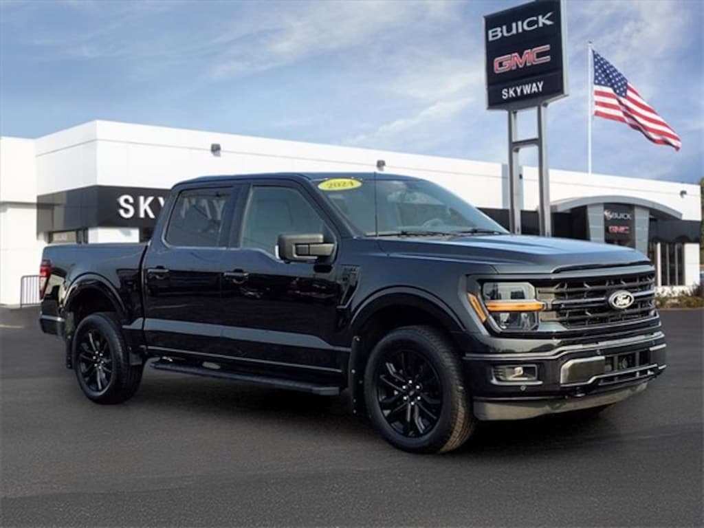 XLT F-150 XLT, 4D SuperCrew, 3.5L V6 EcoBoost, 10-Speed Automatic, 4WD, Black, Black Cloth, 4-Wheel Disc Brakes, 6 Speakers, ABS brakes, Air Conditioning, Alloy wheels, AM/FM radio: SiriusXM with 360L, Auto High-beam Headlights, Auto-dimming Rear-View mirror, Automatic temperature control, Brake assist, Bumpers: chrome, Chrome wheels, Cloth 40/20/40 Front Seat, Compass, Delay-off headlights, Driver door bin, Driver vanity mirror, Dual front impact airbags, Dual front side impact airbags, Electronic Locking w/3.55 Axle Ratio, Electronic Stability Control, Emergency communication system: SYNC 4 911 Assist, Front anti-roll bar, Front Center Armrest w/Storage, Front dual zone A/C, Front fog lights, Front reading lights, Front wheel independent suspension, Fully automatic headlights, Heated door mirrors, Illuminated entry, Low tire pressure warning, Navigation system: Connected Navigation, Occupant sensing airbag, Outside temperature display, Overhead airbag, Overhead console, Panic alarm, Passenger door bin, Passenger vanity mirror, Power door mirrors, Power driver seat, Power steering, Power windows, Radio data system, Radio: AM/FM SiriusXM w/360L, Rear reading lights, Rear step bumper, Rear window defroster, Remote keyless entry, Security system, Speed control, Split folding rear seat, Steering wheel mounted audio controls, SYNC 4 w/Enhanced Voice Recognition, Tachometer, Telescoping steering wheel, Tilt steering wheel, Traction control, Trip computer, Variably intermittent wipers, Voltmeter, Wheels: 18 Chrome-Like PVD. 3.5L V6 EcoBoost 4WD