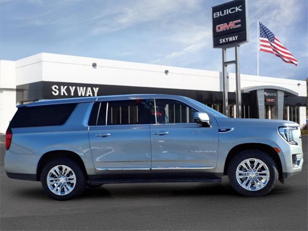 CARFAX One-Owner. SLT Yukon XL SLT, 4D Sport Utility, EcoTec3 5.3L V8, 10-Speed Automatic with Overdrive, 4WD, Sterling Metallic, Jet Black Leather, 2 Presets For Outside Rearview Mirrors, 2 Presets For Power Driver Seat, 3.23 Rear Axle Ratio, 3rd Row 60/40 Power-Folding Split-Bench Seat, 3rd row seats: split-bench, 4-Wheel Disc Brakes, 9 Speakers, ABS brakes, Adaptive Cruise Control, Air Conditioning, Alloy wheels, AM/FM radio: SiriusXM with 360L, AM/FM Stereo, Apple CarPlay/Android Auto, Auto High-beam Headlights, Auto-dimming Rear-View mirror, Automatic Emergency Braking, Automatic temperature control, Bodyside moldings, Bose 9-Speaker Stereo Audio System Feature, Brake assist, Bright Chrome Bodyside Moldings, Bright Front & Rear Door Sill Plates, Bumpers: body-color, Chrome Door Handles w/Body-Color Strip, Compass, Delay-off headlights, Driver door bin, Driver vanity mirror, Dual front impact airbags, Dual front side impact airbags, Dual-Pane Panoramic Power Sunroof, Electronic Stability Control, Emergency communication system: OnStar and GMC connected services capable, Enhanced Automatic Emergency Braking, Following Distance Indicator, Forward Collision Alert, Four wheel independent suspension, Front & Rear Park Assist, Front anti-roll bar, Front Bucket Seats, Front Center Armrest, Front dual zone A/C, Front fog lights, Front Pedestrian Braking, Front reading lights, Fully automatic headlights, Garage door transmitter, Hands-Free Power Programmable Rear Liftgate, HD Surround Vision, Heated & Ventilated Driver & Front Passenger Seats, Heated 2nd Row Outboard Position Seats, Heated door mirrors, Heated Driver & Front Passenger Seats, Heated front seats, Heated Steering Wheel, Illuminated entry, Inside Rear-View Auto-Dimming Mirror, IntelliBeam Automatic High Beam On/Off, Lane Change Alert w/Side Blind Zone Alert, Lane Keep Assist w/Lane Departure Warning, License Plate Front Mounting Package, Low tire pressure warning, Memory seat, Navigation System, Occupant sensing airbag, Outside Heated Power-Adjustable Mirrors, Outside temperature display, Overhead airbag, Overhead console, Panic alarm, Passenger door bin, Passenger vanity mirror, Perforated Leather-Appointed Seating, Power door mirrors, Power driver seat, Power Liftgate, Power passenger seat, Power Release 2nd Row 60/40 Split-Folding Bench Seat, Power Release 2nd Row Bucket Seats, Power steering, Power Tilt & Telescopic Steering Column, Power windows, Preferred Equipment Group 4SA, Premium Smooth Ride Suspension, Rain sensing wipers, Rear air conditioning, Rear anti-roll bar, Rear Cross Traffic Alert, Rear Pedestrian Alert, Rear reading lights, Rear seat center armrest, Rear window defroster, Rear window wiper, Remote keyless entry, Roof rack: rails only, Safety Alert Seat, Security system, SiriusXM w/360L, SLT Luxury Package, Speed control, Speed-sensing steering, Split folding rear seat, Spoiler, Steering wheel mounted audio controls, Tachometer, Telescoping steering wheel, Tilt steering wheel, Traction control, Trip computer, Universal Home Remote, Variably intermittent wipers, Ventilated front seats, Voltmeter, Wheels: 20 x 9 6-Spoke Polished Aluminum, Wireless Charging. EcoTec3 5.3L V8 4WD