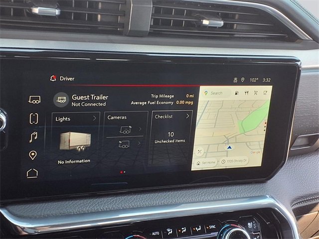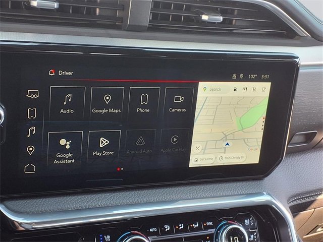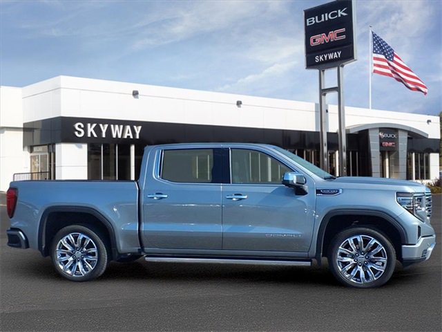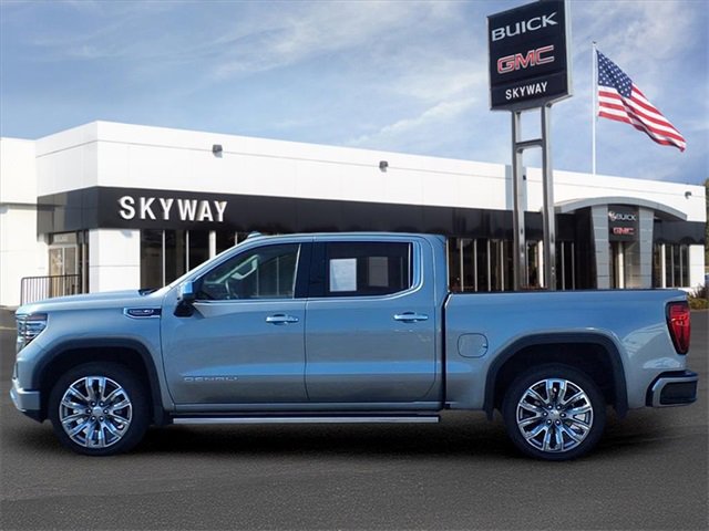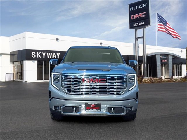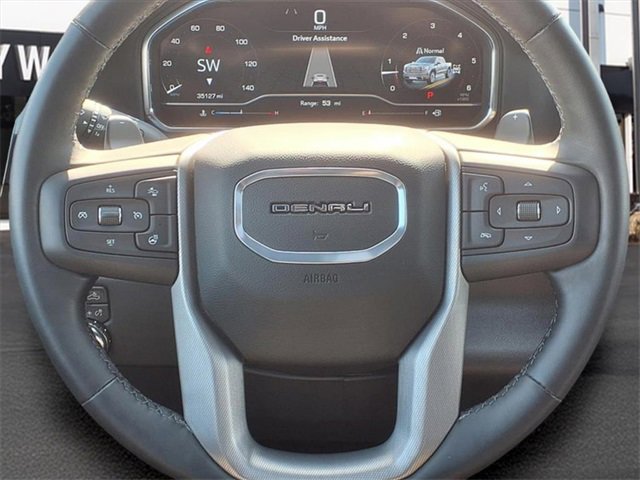 2024 GMC Sierra 1500 Sterling MetallicCARFAX One-Owner. Denali Sierra 1500 Denali, 4D Crew Cab, EcoTec3 5.3L V8, 10-Speed Automatic, 4WD, Sterling Metallic, Jet Black Leather, 12-Way Power Driver Seat Adjuster w/Lumbar, 12-Way Power Passenger Seat Adjuster w/Lumbar, 120-Volt Bed Mounted Power Outlet, 120-Volt Interior Power Outlet, 170 Amp Alternator, 2 Charge/Data USB Ports Inside Center Console, 2 Type-C Charge-Only Rear USB Ports, 2 USB Ports, 3.23 Rear Axle Ratio, 4-Wheel Disc Brakes, 7 Speakers, ABS brakes, Adaptive suspension, Air Conditioning, Alloy wheels, AM/FM radio: SiriusXM with 360L, Apple CarPlay/Android Auto, Auto High-beam Headlights, Auto-dimming door mirrors, Auto-dimming Rear-View mirror, Auto-Locking Rear Differential, Automatic temperature control, Auxiliary External Transmission Oil Cooler, Bed View Camera, Brake assist, Buckle to Drive, Bumpers: body-color, Chrome Header w/Signature Denali Chrome Grille, Chrome Recovery Hooks, Chrome Wheel To Wheel Assist Steps, Color-Keyed Carpeting Floor Covering, Compass, Deep-Tinted Glass, Delay-off headlights, Denali Premium Suspension w/Adaptive Ride Control, Denali Reserve Package, Driver door bin, Driver Memory, Driver vanity mirror, Dual front impact airbags, Dual front side impact airbags, Electric Rear-Window Defogger, Electronic Stability Control, Emergency communication system: OnStar and GMC connected services capable, Enhanced Automatic Emergency Braking, Floor-Mounted Center Console, Following Distance Indicator, Forge Perforated Leather Seat Trim, Forward Collision Alert, Front anti-roll bar, Front Bucket Seats, Front Center Armrest, Front dual zone A/C, Front fog lights, Front License Plate Kit, Front Pedestrian Braking, Front Rain-Sensing Wipers, Front reading lights, Front wheel independent suspension, Fully automatic headlights, Garage door transmitter, Genuine wood console insert, Genuine wood dashboard insert, Genuine wood door panel insert, GMC Connected Access Capable, GMC MultiPro Power Steps, HD Surround Vision, Heated 2nd Row Outboard Seats, Heated door mirrors, Heated Driver & Front Outboard Passenger Seating, Heated front seats, Heated rear seats, Heated steering wheel, Heavy-Duty Air Filter, Hill Descent Control, Hitch Guidance, Hitch View, Illuminated entry, In-Vehicle Trailering System App, Integrated Trailer Brake Controller, IntelliBeam Automatic High Beam On/Off, Keyless Open & Start, Lane Keep Assist w/Lane Departure Warning, LED Cargo Area Lighting, Low tire pressure warning, Memory seat, Multicolor 15 Diagonal Head-Up Display, Navigation System, Occupant sensing airbag, OnStar & GMC Connected Services Capable, Outside temperature display, Overhead airbag, Overhead console, Panic alarm, Passenger door bin, Passenger vanity mirror, Perimeter Lighting, Power Door Locks, Power door mirrors, Power driver seat, Power Front Passenger Windows w/Express Up/Down, Power Front Windows w/Driver Express Up/Down, Power passenger seat, Power Rake & Telescoping Steering Column, Power Rear Windows w/Express Down, Power Sliding Rear Window w/Rear Defogger, Power steering, Power Sunroof, Power windows, Preferred Equipment Group 5SA, Premium audio system: GMC Infotainment System, Premium Bose 7-Speaker Sound System, Push Button Start, Radio data system, Radio: Premium GMC Infotainment Audio System, Rain sensing wipers, Rear Camera Mirror, Rear Cross Traffic Braking, Rear Pedestrian Detection, Rear reading lights, Rear seat center armrest, Rear step bumper, Rear Wheelhouse Liners, Rear window defroster, Remote keyless entry, Remote Vehicle Starter System, Safety Alert Seat, Security system, SiriusXM w/360L, Speed control, Speed-sensing steering, Split folding rear seat, Spray-On Pickup Bedliner w/Denali Logo, Steering Wheel Audio Controls, Steering wheel mounted audio controls, Tachometer, Technology Package, Telescoping steering wheel, Theft Deterrent System (Unauthorized Entry), Tilt steering wheel, Traction control, Trailer Camera Provisions, Tra