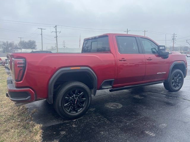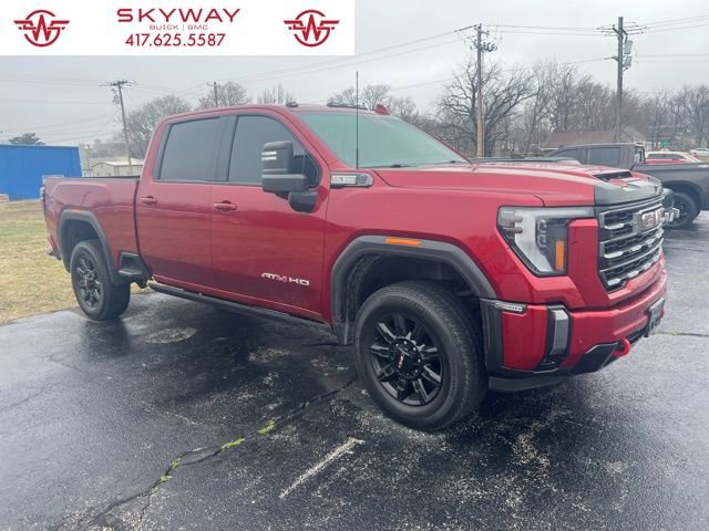 CARFAX One-Owner. AT4 Sierra 2500HD AAT4, 4D Crew Cab, 6.6L V8, 10-Speed Automatic, 4WD, Volcanic Red Tintcoat, Jet Black With Kalahari Accents Leather, 10-Way Power Driver Seat Adjuster w/Lumbar, 10-Way Power Passenger Seat Adjuster w/Lumbar, 120-Volt Bed Mounted Power Outlet, 120-Volt Instrument Panel Power Outlet, 2 Charge-Only Rear USB Ports, 2 Charge/Data USB Ports Inside Center Console, 2 USB Ports, 2-Speed Active Transfer Case, 3.73 Rear Axle Ratio, 4-Wheel Disc Brakes, 7 Speakers, ABS brakes, Adaptive Cruise Control, Air Conditioning, Alloy wheels, AM/FM radio: SiriusXM with 360L, Apple CarPlay/Android Auto, AT4 Preferred Package, AT4 Premium Plus Package, Auto High-beam Headlights, Auto-dimming door mirrors, Auto-dimming Rear-View mirror, Automatic Emergency Braking, Automatic temperature control, Bed View Camera w/2 Trailer Camera Provisions, Bose Premium 7-Speaker Sound System, Brake assist, Buckle to Drive, Bumpers: body-color, Compass, Deep-Tinted Glass, Delay-off headlights, Driver door bin, Driver Memory, Driver vanity mirror, Dual front impact airbags, Dual front side impact airbags, Electric Rear-Window Defogger, Electronic Stability Control, Floor-Mounted Center Console, Following Distance Indicator, Forward Collision Alert, Front anti-roll bar, Front Bucket Seats, Front Center Armrest, Front dual zone A/C, Front fog lights, Front License Plate Kit, Front Pedestrian Braking, Front Prem Floor Liners w/Removable Carpet Insert, Front Rain-Sensing Wipers, Front reading lights, Front wheel independent suspension, Fully automatic headlights, Gloss Black Header Grille & Grille Insert Bars, GMC Connected Access Capable, Gooseneck/5th Wheel Prep Package, HD Surround Vision, Heated 2nd Row Outboard Seats, Heated door mirrors, Heated Driver & Front Outboard Passenger Seats, Heated front seats, Heated rear seats, Heated steering wheel, Heavy-Duty 80 Amp Battery, Hill Descent Control, Hitch Guidance w/Hitch View, Hitch Package (LPO), Illuminated entry, In-Vehicle Trailering System App, Inside Rearview Auto-Dimming Rear Camera Mirror, Integrated Trailer Brake Controller, IntelliBeam Automatic High Beam On/Off, Keyless Open & Start, Lane Departure Warning System, LED Cargo Area Lighting, LED Smoked Amber Roof Marker Lamps, Low tire pressure warning, Manual Tilt-Wheel/Telescoping Steering Column, Memory seat, Multicolor 15 Diagonal Head-Up Display, Occupant sensing airbag, Off-Road High Clearance Step (LPO), Off-Road Suspension, OnStar & GMC Connected Services Capable, Outside temperature display, Overhead airbag, Overhead console, Panic alarm, Passenger door bin, Passenger vanity mirror, Perforated Leather-Appointed Front Seat Trim, Pickup Box, Power door mirrors, Power driver seat, Power Front Passenger Windows w/Express Up/Down, Power passenger seat, Power Sliding Rear Window w/Defogger, Power steering, Power Sunroof, Power windows, Power-Retractable Black Assist Steps, Preferred Equipment Group 4SB, Premium audio system: Premium GMC Infotainment System, Push Button Start, Radio: AM/FM w/Premium GMC Infotainment System, Rain sensing wipers, Rear Cross Traffic Alert, Rear Prem Floor Liners w/Removable Carpet Insert, Rear reading lights, Rear seat center armrest, Rear step bumper, Rear Wheelhouse Liners, Rear window defroster, Remote keyless entry, Remote Vehicle Starter System, Safety Alert Seat, Security system, SiriusXM w/360L, Speed control, Speed-sensing steering, Split folding rear seat, Spray-On Bedliner w/AT4 Logo, Steering Wheel Audio Controls, Steering wheel mounted audio controls, Tachometer, Technology Package, Telescoping steering wheel, Tilt steering wheel, Traction control, Trailer Cam Provisions & Trailer Viewing Software, Trailer Side Blind Zone Alert, Trip computer, Turn signal indicator mirrors, Ultrasonic Front & Rear Park Assist, Unauthorized Entry Theft-Deterrent System, Universal Home Remote, Variably int