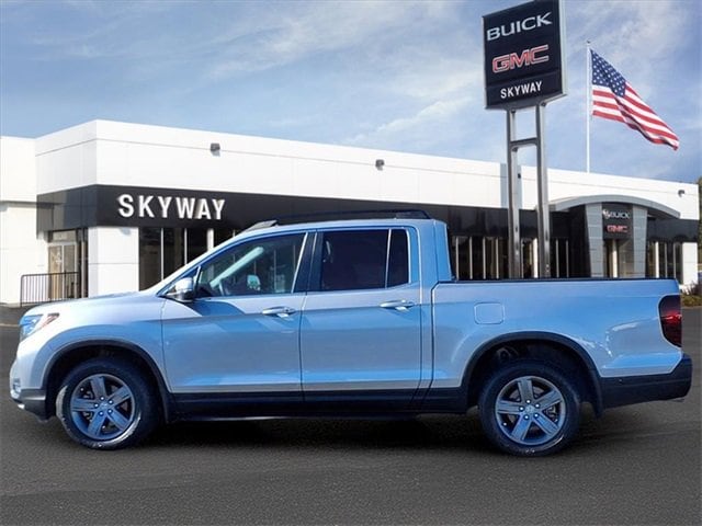 2022 Honda Ridgeline Lunar Silver MetallicRTL Ridgeline RTL, 4D Crew Cab, 3.5L V6 SOHC i-VTEC 24V, 9-Speed Automatic, AWD, Rtl Leather, 4-Wheel Disc Brakes, 4.33 Axle Ratio, 7 Speakers, ABS brakes, Air Conditioning, Alloy wheels, AM/FM radio: SiriusXM, Apple CarPlay/Android Auto, Auto-dimming Rear-View mirror, Automatic temperature control, Blind Spot Information (BSI) System warning, Bluetooth® Hands-Free Link, Brake assist, Bumpers: body-color, Delay-off headlights, Driver door bin, Driver vanity mirror, Driver's Seat Mounted Armrest, Dual front impact airbags, Dual front side impact airbags, Electronic Stability Control, Exterior Parking Camera Rear, Forward collision: Collision Mitigation Braking System (CMBS) + FCW mitigation, Four wheel independent suspension, Front anti-roll bar, Front Bucket Seats, Front dual zone A/C, Front fog lights, Front reading lights, Fully automatic headlights, Garage door transmitter: HomeLink, Heated door mirrors, Heated Front Bucket Seats, Heated front seats, Illuminated entry, Low tire pressure warning, Memory seat, Occupant sensing airbag, Outside temperature display, Overhead airbag, Overhead console, Panic alarm, Passenger door bin, Passenger seat mounted armrest, Passenger vanity mirror, Perforated Leather Seat Trim, Power door mirrors, Power driver seat, Power moonroof, Power passenger seat, Power steering, Power windows, Radio data system, Radio: 215-Watt Audio System w/7 Speakers, Rear air conditioning, Rear anti-roll bar, Rear reading lights, Rear seat center armrest, Rear step bumper, Rear window defroster, Remote keyless entry, Security system, SiriusXM, Speed control, Speed-sensing steering, Split folding rear seat, Steering wheel mounted audio controls, Tachometer, Telescoping steering wheel, Tilt steering wheel, Traction control, Trip computer, Turn signal indicator mirrors, Variably intermittent wipers, Wheels: 18 Exclusive Pewter Gray Alloy. 3.5L V6 SOHC i-VTEC 24V AWDHere at Skyway Buick-GMC we pride ourselves in a transparent car buying experience. We give YOU the customer the best price upfront. We provide every customer with a Carfax and repair order upon request. Come experience the right way to purchase your next car! Give us a call today to schedule a test drive! Skyway Buick GMC 808 Illinois Avenue Joplin MO, 64801.Dealer will not be held responsible for discrepancies in descriptions or pricing.18/24 City/Highway MPG