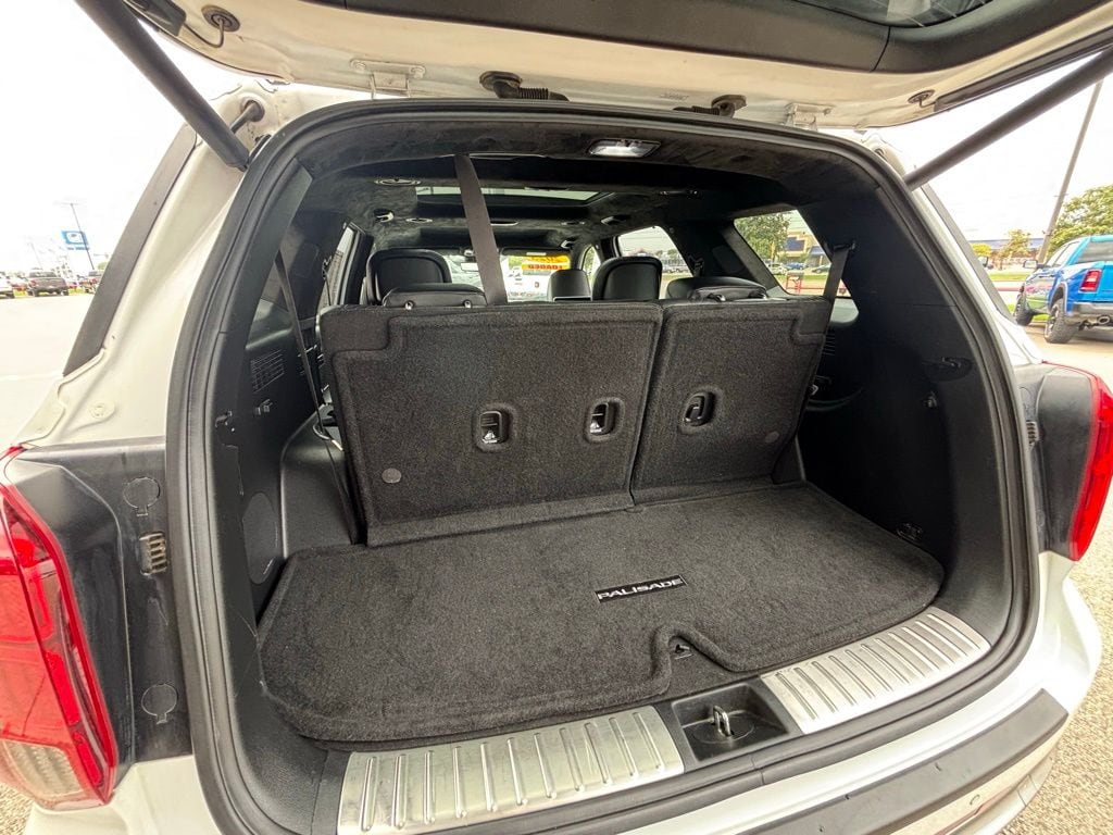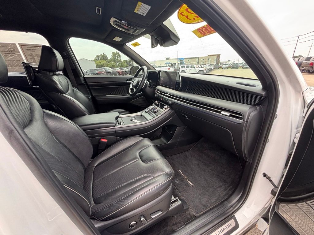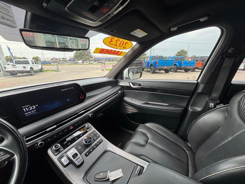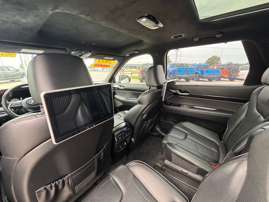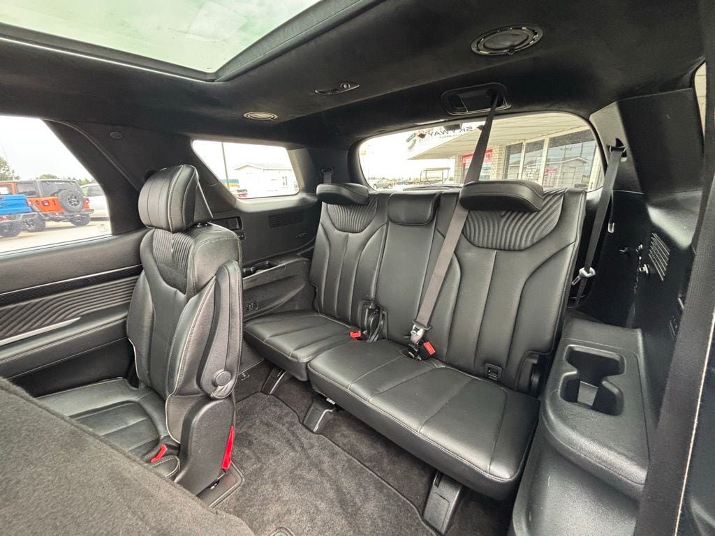 Fresh Trade, 12 Speakers, 3.648 Axle Ratio, 3rd row seats: split-bench, 4-Wheel Disc Brakes, ABS brakes, Air Conditioning, Alloy wheels, AM/FM radio: SiriusXM, Apple CarPlay & Android Auto, Auto High-beam Headlights, Auto-dimming door mirrors, Auto-dimming Rear-View mirror, Auto-leveling suspension, Automatic temperature control, Brake assist, Bumpers: body-color, Cargo Blocks, Cargo Cover/Screen, Cargo Net, Cargo Package, Cargo Tray, Carpeted Floor Mats, Compass, Delay-off headlights, Driver door bin, Driver vanity mirror, Dual front impact airbags, Dual front side impact airbags, Electronic Stability Control, Emergency communication system: Blue Link Connected Car Service (3-year complimentary subscription), Exterior Parking Camera Rear, First Aid Kit, Four wheel independent suspension, Front anti-roll bar, Front Bucket Seats, Front Center Armrest, Front dual zone A/C, Front reading lights, Fully automatic headlights, Garage door transmitter: HomeLink, harman/kardon® Speakers, Heads-Up Display, Heated & Ventilated Front Bucket Seats, Heated door mirrors, Heated front seats, Heated rear seats, Heated steering wheel, Illuminated entry, Knee airbag, Low tire pressure warning, Memory seat, Navigation System, Occupant sensing airbag, Option Group 01, Outside temperature display, Overhead airbag, Overhead console, Panic alarm, Passenger door bin, Passenger vanity mirror, Power door mirrors, Power driver seat, Power Liftgate, Power moonroof, Power passenger seat, Power steering, Power windows, Premium Nappa Leather Seat Trim, Radio data system, Radio: AM/FM/MP3 Premium Audio System, Rain sensing wipers, Rear air conditioning, Rear anti-roll bar, Rear audio controls, Rear Bumper Applique, Rear reading lights, Rear side impact airbag, Rear window defroster, Rear window wiper, Reclining 3rd row seat, Remote keyless entry, Security system, Speed control, Speed-sensing steering, Split folding rear seat, Spoiler, Steering wheel mounted audio controls, Tachometer, Telescoping steering wheel, Tilt steering wheel, Traction control, Trip computer, Turn signal indicator mirrors, Variably intermittent wipers, Ventilated front seats, Ventilated rear seats, Wheels: 20" x 7.5J Calligraphy Exclusive Alloy.