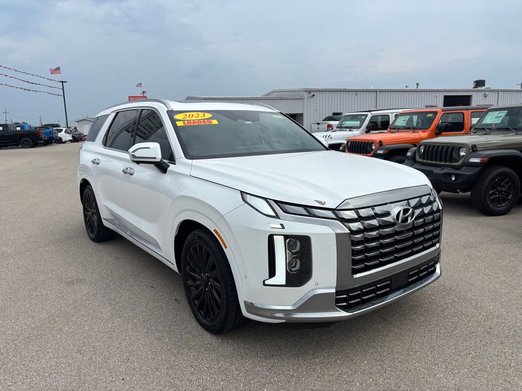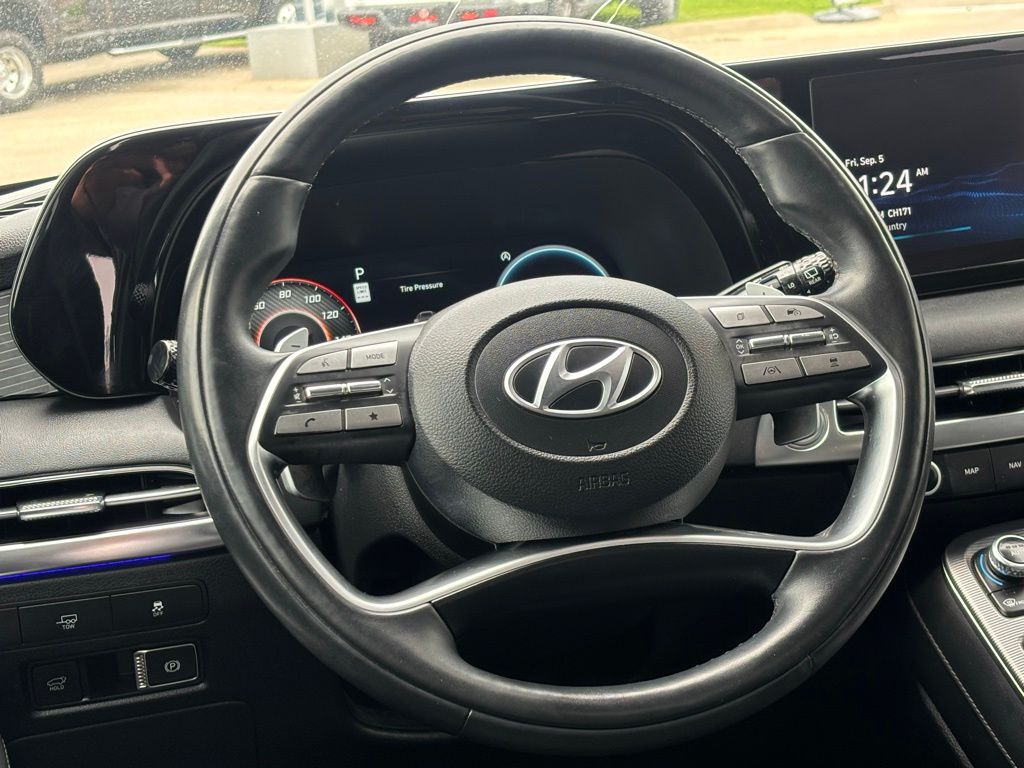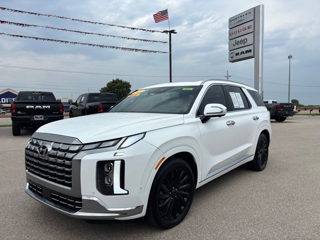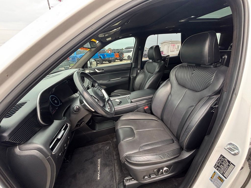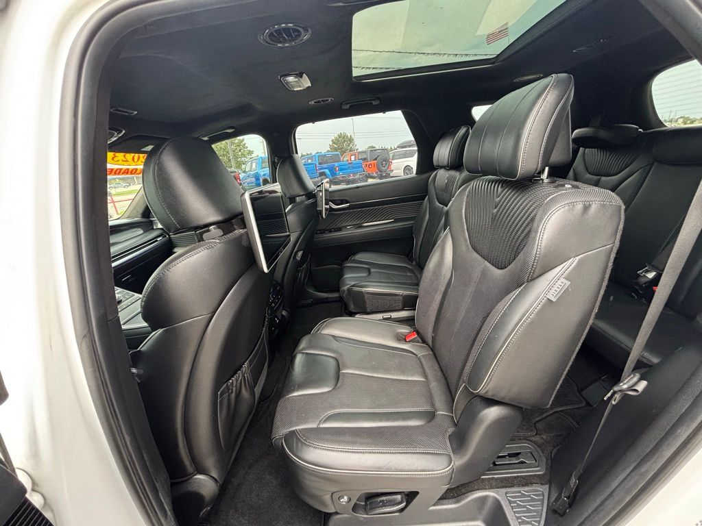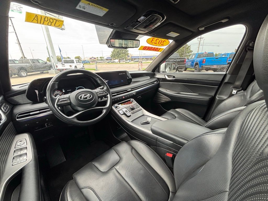 Fresh Trade, 12 Speakers, 3.648 Axle Ratio, 3rd row seats: split-bench, 4-Wheel Disc Brakes, ABS brakes, Air Conditioning, Alloy wheels, AM/FM radio: SiriusXM, Apple CarPlay & Android Auto, Auto High-beam Headlights, Auto-dimming door mirrors, Auto-dimming Rear-View mirror, Auto-leveling suspension, Automatic temperature control, Brake assist, Bumpers: body-color, Cargo Blocks, Cargo Cover/Screen, Cargo Net, Cargo Package, Cargo Tray, Carpeted Floor Mats, Compass, Delay-off headlights, Driver door bin, Driver vanity mirror, Dual front impact airbags, Dual front side impact airbags, Electronic Stability Control, Emergency communication system: Blue Link Connected Car Service (3-year complimentary subscription), Exterior Parking Camera Rear, First Aid Kit, Four wheel independent suspension, Front anti-roll bar, Front Bucket Seats, Front Center Armrest, Front dual zone A/C, Front reading lights, Fully automatic headlights, Garage door transmitter: HomeLink, harman/kardon® Speakers, Heads-Up Display, Heated & Ventilated Front Bucket Seats, Heated door mirrors, Heated front seats, Heated rear seats, Heated steering wheel, Illuminated entry, Knee airbag, Low tire pressure warning, Memory seat, Navigation System, Occupant sensing airbag, Option Group 01, Outside temperature display, Overhead airbag, Overhead console, Panic alarm, Passenger door bin, Passenger vanity mirror, Power door mirrors, Power driver seat, Power Liftgate, Power moonroof, Power passenger seat, Power steering, Power windows, Premium Nappa Leather Seat Trim, Radio data system, Radio: AM/FM/MP3 Premium Audio System, Rain sensing wipers, Rear air conditioning, Rear anti-roll bar, Rear audio controls, Rear Bumper Applique, Rear reading lights, Rear side impact airbag, Rear window defroster, Rear window wiper, Reclining 3rd row seat, Remote keyless entry, Security system, Speed control, Speed-sensing steering, Split folding rear seat, Spoiler, Steering wheel mounted audio controls, Tachometer, Telescoping steering wheel, Tilt steering wheel, Traction control, Trip computer, Turn signal indicator mirrors, Variably intermittent wipers, Ventilated front seats, Ventilated rear seats, Wheels: 20" x 7.5J Calligraphy Exclusive Alloy.