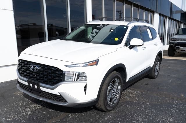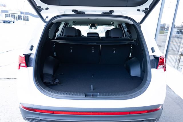 CARFAX One-Owner. SEL Santa Fe SEL, 4D Sport Utility, 2.5L I4, 8-Speed Automatic with SHIFTRONIC, FWD, Serenity White Pearl, Black Cloth, 18 x 7.5J Alloy Wheels, 4-Wheel Disc Brakes, 6 Speakers, ABS brakes, Air Conditioning, Alloy wheels, AM/FM radio: SiriusXM, Apple CarPlay & Android Auto, Auto High-beam Headlights, Automatic temperature control, Axle Ratio: 3.798, Brake assist, Bumper Applique, Bumpers: body-color, Cargo Cover/Screen, Cargo Net, Carpeted Floor Mats, Delay-off headlights, Driver door bin, Driver vanity mirror, Dual front impact airbags, Dual front side impact airbags, Electronic Stability Control, Emergency communication system, Exterior Parking Camera Rear, First Aid Kit, Four wheel independent suspension, Front anti-roll bar, Front Bucket Seats, Front Center Armrest, Front dual zone A/C, Front reading lights, Fully automatic headlights, Heated door mirrors, Heated Front Bucket Seats, Heated front seats, Illuminated entry, Leather steering wheel, Low tire pressure warning, Navigation System, Occupant sensing airbag, Option Group 01, Outside temperature display, Overhead airbag, Overhead console, Panic alarm, Passenger door bin, Passenger vanity mirror, Power door mirrors, Power driver seat, Power Liftgate, Power steering, Power windows, Radio: AM/FM Display Audio, Rear anti-roll bar, Rear seat center armrest, Rear window defroster, Rear window wiper, Remote keyless entry, Roof Rack Cross Bars (DISC), Security system, Speed control, Speed-sensing steering, Split folding rear seat, Spoiler, Stain-Resistant Cloth Seat Trim, Steering wheel mounted audio controls, Tachometer, Telescoping steering wheel, Tilt steering wheel, Traction control, Trip computer, Turn signal indicator mirrors, Variably intermittent wipers. 2.5L I4 FWD