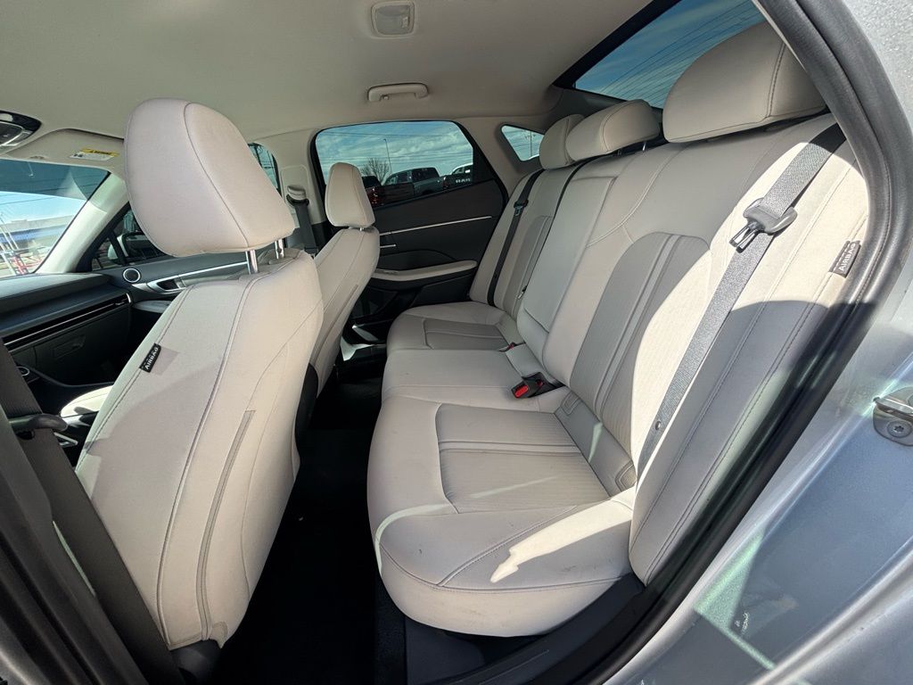 Gray Cloth, 17" x 7.0J Aluminum Alloy Wheels, 4-Wheel Disc Brakes, 6 Speakers, ABS brakes, Air Conditioning, Alloy wheels, AM/FM radio: SiriusXM, Apple CarPlay & Android Auto, Auto High-beam Headlights, Automatic temperature control, Brake assist, Bumpers: body-color, Cloth Seating Surfaces, Delay-off headlights, Driver door bin, Driver vanity mirror, Dual front impact airbags, Dual front side impact airbags, Electronic Stability Control, Emergency communication system: Bluelink+, Exterior Parking Camera Rear, Four wheel independent suspension, Front anti-roll bar, Front Bucket Seats, Front Center Armrest, Front dual zone A/C, Front reading lights, Fully automatic headlights, Heated door mirrors, Heated Front Bucket Seats, Heated front seats, Illuminated entry, Knee airbag, Low tire pressure warning, Occupant sensing airbag, Option Group 01, Outside temperature display, Overhead airbag, Overhead console, Panic alarm, Passenger door bin, Passenger vanity mirror, Power door mirrors, Power driver seat, Power steering, Power windows, Radio data system, Radio: AM/FM/HD/SiriusXM, Rear anti-roll bar, Rear seat center armrest, Rear side impact airbag, Rear window defroster, Remote keyless entry, Security system, Speed control, Speed-sensing steering, Speed-Sensitive Wipers, Split folding rear seat, Steering wheel mounted audio controls, Tachometer, Telescoping steering wheel, Tilt steering wheel, Traction control, Trip computer, Variably intermittent wipers.
