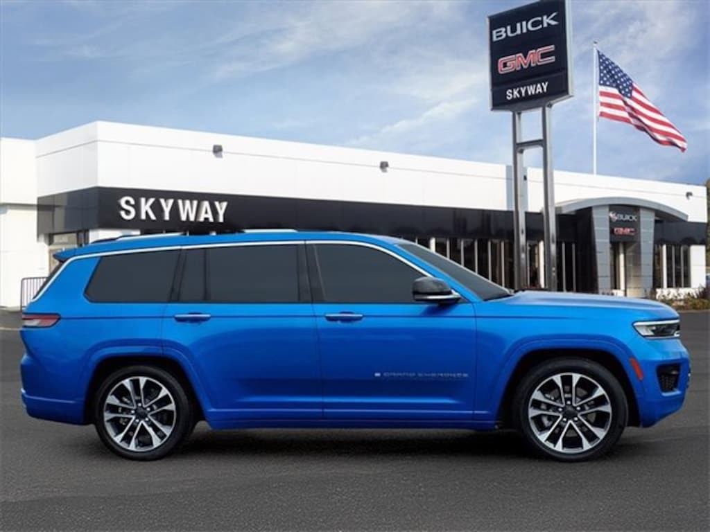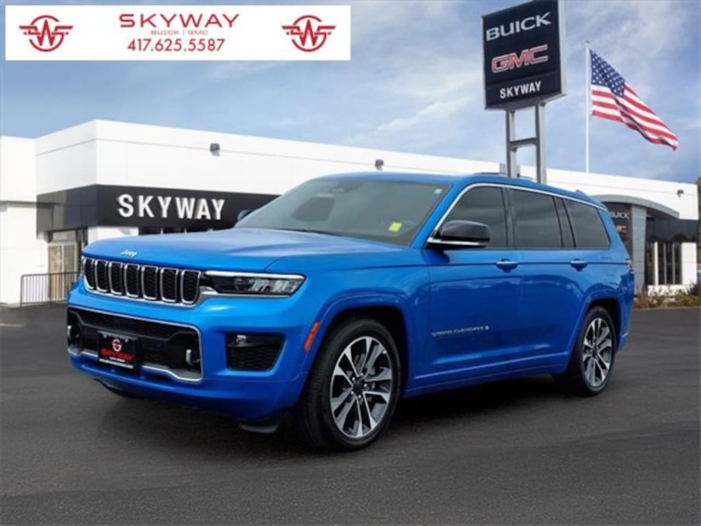 CARFAX One-Owner. Overland Grand Cherokee L Overland, 4D Sport Utility, 3.6L V6 24V VVT, 8-Speed Automatic, 4WD, Hydro Blue Pearlcoat, Global Black Leather, 10 Speakers, 3.45 Rear Axle Ratio, 3rd row seats: split-bench, 4-Wheel Disc Brakes, ABS brakes, Active Noise Control System, Adaptive suspension, Air Conditioning, Alloy wheels, AM/FM radio: SiriusXM with 360L, Anti-whiplash front head restraints, Audio memory, Auto High-beam Headlights, Auto-dimming door mirrors, Auto-dimming Rear-View mirror, Auto-leveling suspension, Automatic temperature control, Brake assist, Bumpers: body-color, Compass, Delay-off headlights, Driver door bin, Driver vanity mirror, Dual front impact airbags, Dual front side impact airbags, Electronic Stability Control, Emergency communication system, Four wheel independent suspension, Front anti-roll bar, Front Bucket Seats, Front Center Armrest w/Storage, Front dual zone A/C, Front fog lights, Front License Plate Bracket, Front Passenger Interactive Display, Front reading lights, Fully automatic headlights, Garage door transmitter, Heated door mirrors, Heated front seats, Heated rear seats, Heated steering wheel, Illuminated entry, Knee airbag, Low tire pressure warning, Memory seat, Nappa Leather Seats, Navigation System, Normal Duty Suspension, Occupant sensing airbag, Outside temperature display, Overhead airbag, Overhead console, Panic alarm, Passenger door bin, Passenger vanity mirror, Power door mirrors, Power driver seat, Power Fold Seatbacks, Power Liftgate, Power moonroof, Power passenger seat, Power steering, Power windows, Quick Order Package 22N, Radio data system, Radio: Uconnect 5 Nav w/10.1 Display, Rain sensing wipers, Rear air conditioning, Rear anti-roll bar, Rear reading lights, Rear window defroster, Rear window wiper, Reclining 3rd row seat, Remote keyless entry, Security system, Speed control, Speed-Sensitive Wipers, Split folding rear seat, Spoiler, Steering wheel memory, Steering wheel mounted audio controls, Tachometer, Telescoping steering wheel, Tilt steering wheel, Traction control, Trip computer, Turn signal indicator mirrors, Variably intermittent wipers, Ventilated front seats, Voltmeter, Wheels: 20 x 8.5 Machined Face Aluminum. 3.6L V6 24V VVT 4WD
