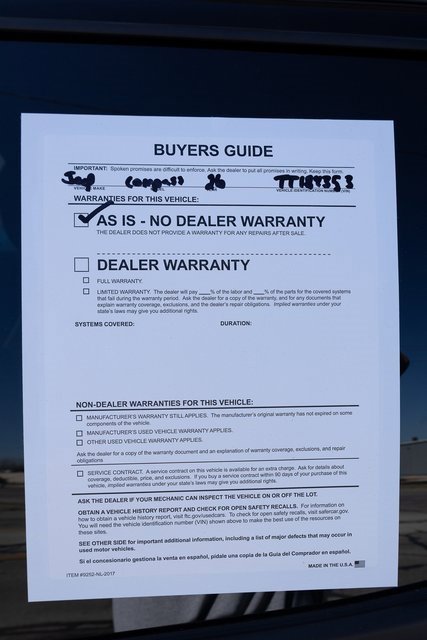 CARFAX One-Owner. Limited Compass Limited, 4D Sport Utility, 2.0L I4 DOHC, 8-Speed Automatic, 4WD, Hydro Blue Pearlcoat, Black Artificial Leather, 10.1 Touchscreen Display, 3.73 Final Drive Ratio, 4-Wheel Disc Brakes, 4G LTE Wi-Fi Hot Spot, 6 Speakers, ABS brakes, Air Conditioning, Alexa Built-In, Alloy wheels, AM/FM radio: SiriusXM, Auto High-beam Headlights, Auto-dimming Rear-View mirror, Automatic temperature control, Black Day Light Opening Moldings, Brake assist, Bumpers: body-color, Compass, Delay-off headlights, Driver door bin, Driver vanity mirror, Dual front impact airbags, Electronic Stability Control, Emergency communication system: SiriusXM Guardian, Four wheel independent suspension, Front anti-roll bar, Front Bucket Seats, Front Center Armrest w/Storage, Front dual zone A/C, Front fog lights, Front License Plate Bracket, Front reading lights, Fully automatic headlights, Global Telematics Box Module, Gloss Black Surround/Neutral Gray Rings, Heated door mirrors, Heated front seats, Heated steering wheel, Illuminated entry, Knee airbag, Leather Shift Knob, Leather steering wheel, Leatherette Seats, Limited Altitude Pack, MOPAR Bodyside Graphic, MOPAR Hood Graphic, Neutral Gray Exterior Accents, Neutral Gray Exterior Badging, Occupant sensing airbag, Outside temperature display, Overhead airbag, Overhead console, Panic alarm, ParkView Rear Back-Up Camera, Passenger door bin, Passenger vanity mirror, Piano Black Interior Accents, Power door mirrors, Power driver seat, Power Liftgate, Power steering, Power windows, Premium audio system: UConnect 5, Quick Order Package 29W Limited Altitude, Radio: Uconnect 5 with 10.1 Display, Rain sensing wipers, Rear anti-roll bar, Rear seat center armrest, Rear window defroster, Rear window wiper, Remote keyless entry, Security system, SiriusXM Guardian - Included Trail (B), SiriusXM Radio Service, Speed control, Split folding rear seat, Spoiler, Steering wheel mounted audio controls, Tachometer, Telescoping steering wheel, Tilt steering wheel, Traction control, Trip computer, Turn signal indicator mirrors, Variably intermittent wipers, Wheels: 18 x 7 Painted Diamond Cut Aluminum, Wheels: 19 x 7.5 Aluminum Painted. 2.0L I4 DOHC 4WD