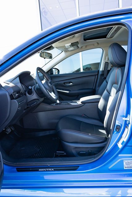 New Price! CARFAX One-Owner. SR Sentra SR, 4D Sedan, 2.0L I4 DOHC, Automatic, FWD, Electric Blue Metallic/Super Black, Sport Cloth, 18 Alloy Wheels, 2-Tone Non Premium Paint, 4-Wheel Disc Brakes, 6 Speakers, 6-Way Power Driver's Seat, ABS brakes, Air Conditioning, Alloy wheels, AM/FM radio: SiriusXM, Auto High-beam Headlights, Automatic temperature control, Blind Spot Warning, Bose Premium Audio System w/8 Speakers, Brake assist, Bumpers: body-color, Carpeted Floor Mats w/Trunk Mat, Clear Rear Bumper Protector, Door Sill Plates, Driver door bin, Driver vanity mirror, Dual front impact airbags, Dual front side impact airbags, Electronic Stability Control, Four wheel independent suspension, Front anti-roll bar, Front Bucket Seats, Front Center Armrest, Front dual zone A/C, Front reading lights, Fully automatic headlights, Heated door mirrors, Heated Front Bucket Seats, Heated front seats, Heated Steering Wheel, Illuminated entry, Intelligent Around View Monitor (I-AVM), Knee airbag, Leather Shift Knob, Leather steering wheel, Leatherette Seat Trim, Low tire pressure warning, Map Pocket Lighting, Nissan USB Charging Cable Set, NissanConnect featuring Apple CarPlay and Android Auto, NissanConnect Services, Occupant sensing airbag, Outside temperature display, Overhead airbag, Overhead console, Panic alarm, Passenger door bin, Passenger vanity mirror, Power door mirrors, Power Sliding Glass Moonroof w/Tilt Feature, Power steering, Power windows, Radio data system, Radio: AM/FM w/RDS/MP3/Aux-In, Rear anti-roll bar, Rear Parking Sensors, Rear seat center armrest, Rear side impact airbag, Rear window defroster, Remote keyless entry, Security system, Speed control, Speed-sensing steering, Split folding rear seat, Spoiler, Sport Cloth Seat Trim, SR Premium Package, Steering wheel mounted audio controls, Sunvisors w/Illuminated Vanity Mirrors, Tachometer, Technical Spec Change 1 (DISC), Technical Spec Change 2, Telescoping steering wheel, Tilt steering wheel, Traction control, Trip computer, Turn signal indicator mirrors, Variably intermittent wipers, Wi-Fi Hotspot. 2.0L I4 DOHC FWD