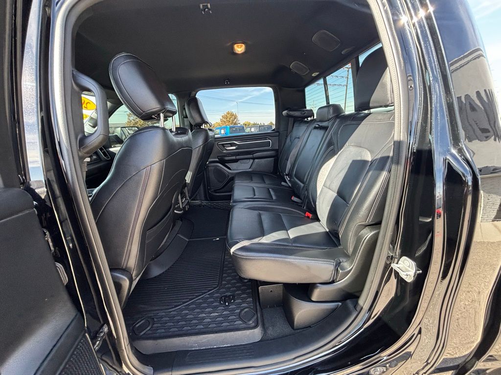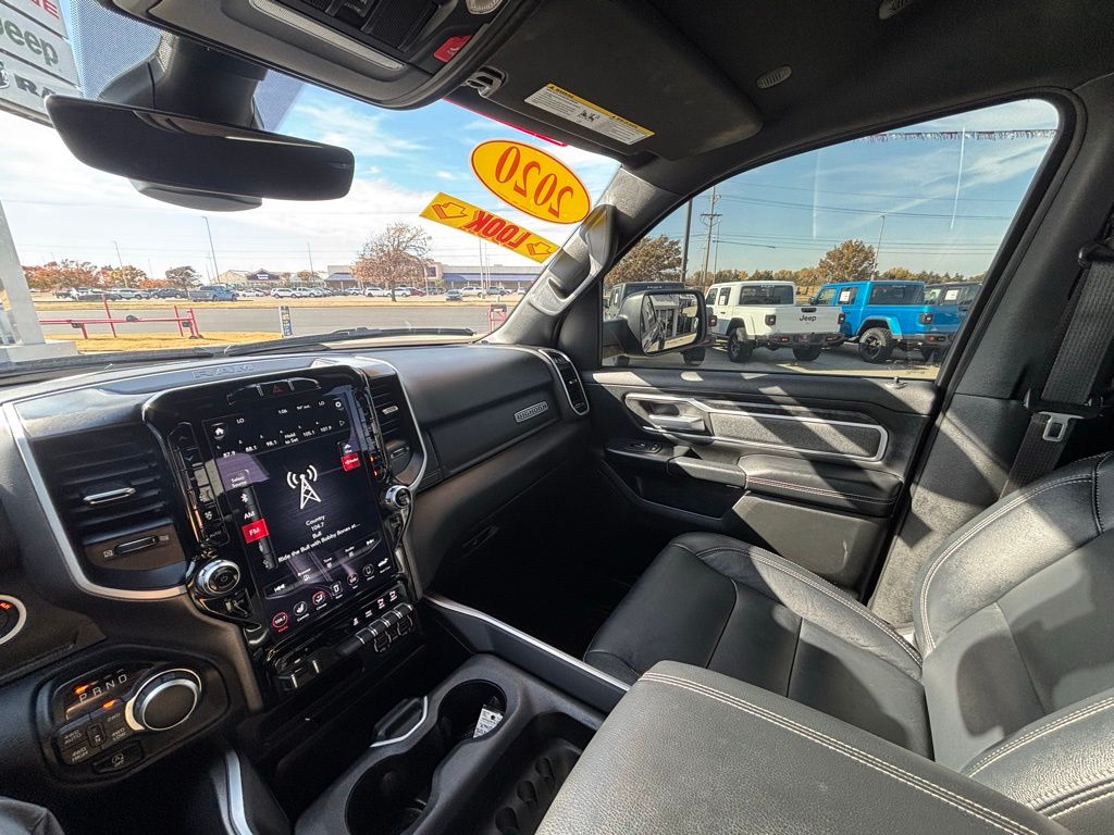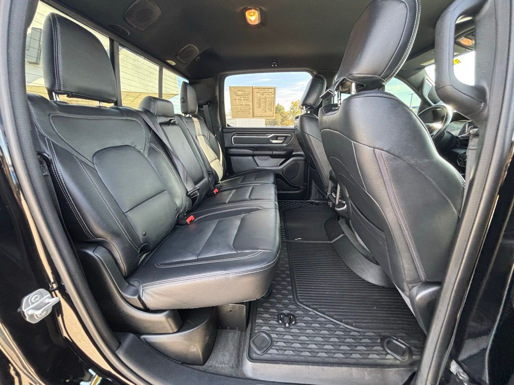 115V Auxiliary Power Outlet, 115V Auxiliary Rear Power Outlet, 2 USB Full Function/Charge Only Media Hub, 2nd Row In Floor Storage Bins, 3 Rear Seat Head Restraints, 4 Adjustable Cargo Tie-Down Hooks, 4 Way Front Headrests, 400W Inverter, Air Conditioning ATC w/Dual Zone Control, Auto-Dimming Rear-View Mirror, Bed Utility Group, Big Horn Badge, Big Horn IP Badge, Big Horn Level 2 Equipment Group, Black Interior Accents, Black Premium Power Mirrors, Body Color Door Handles, Body Color Front Bumper, Body Color Premium Power Mirrors, Body Color Rear Bumper w/Step Pads, Bucket Seats, Class IV Receiver Hitch, Dampened Tailgate, Deluxe Cloth Bucket Seats, Deployable Bed Step, Foam Bottle Insert (Door Trim Panel), Front LED Fog Lamps, Front Seat Back Map Pockets, Full Length Floor Console, Glove Box Lamp, GPS Navigation, Grille Surround 1 Body Color Texture 2 Black, Heated Front Seats, Heated Steering Wheel, LED Reflector Headlamps, LED Taillamps, Manual Adjust 4-Way Front Passenger Seat, ParkSense Front/Rear Park Assist w/Stop, Pick-Up Box Lighting, Power 4-Way Driver Lumbar Adjust, Power 8-Way Driver Seat, Power Adjustable Pedals, Premium Lighting Group, Quick Order Package 27Z Big Horn, Radio: Uconnect 4 w/8.4" Display, Rear 60/40 Folding Seat, Rear Dome w/On/Off Switch Lamp, Rear Power Sliding Window, Rear Window Defroster, Security Alarm, SiriusXM Satellite Radio, Sport Appearance Package, Sport Decal, Spray In Bedliner, Sun Visors w/Illuminated Vanity Mirrors, Universal Garage Door Opener.