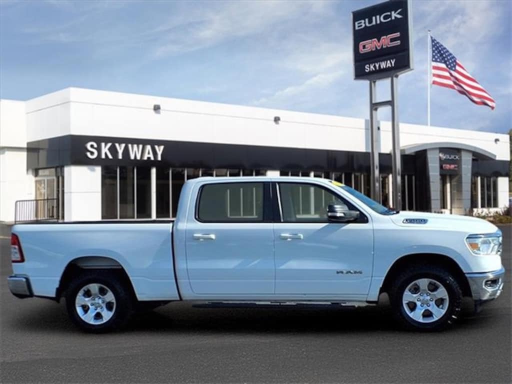 Big Horn/Lone Star 1500 Big Horn/Lone Star, 4D Crew Cab, HEMI 5.7L V8 Multi Displacement VVT, 8-Speed Automatic, 4WD, Bright White Clearcoat, Black Cloth, 1 Year Telematics Service, 2nd Row In Floor Storage Bins, 3 Rear Seat Head Restraints, 3.21 Rear Axle Ratio, 4 Way Front Headrests, 4-Wheel Disc Brakes, 40/20/40 Split Bench Seat, 48V Belt Starter Generator, 6 Speakers, ABS brakes, Air Conditioning, Alloy wheels, AM/FM radio, Auto-Dimming Exterior Driver Mirror, Auto-Dimming Rear-View Mirror, Bed Utility Group, Big Horn Badge, Big Horn Level 1 Equipment Group, Black Exterior Mirrors, Black Premium Power Mirrors, Brake assist, Bumpers: chrome, Class IV Receiver Hitch, Cloth Bench Seat, Cluster 3.5 TFT Color Display, Compass, Delay-off headlights, Driver door bin, Dual front impact airbags, Dual front side impact airbags, Electronic Stability Control, Exterior Mirrors Courtesy Lamps, Exterior Mirrors w/Supplemental Signals, For More Info, Call 800-643-2112, Front anti-roll bar, Front Center Armrest w/Storage, Front fog lights, Front License Plate Bracket, Front reading lights, Front Seat Back Map Pockets, Front wheel independent suspension, Fully automatic headlights, Glove Box Lamp, GPS Antenna Input, Heated door mirrors, Illuminated entry, Integrated Voice Command w/Bluetooth, Leather steering wheel, Low tire pressure warning, Manufacturer's Statement of Origin, MOPAR 4 Adjustable Cargo Tie-Down Hooks, MOPAR Deployable Bed Step, MOPAR Spray In Bedliner, Occupant sensing airbag, Outside temperature display, Overhead airbag, Overhead console, Panic alarm, ParkView Rear Back-Up Camera, Passenger door bin, Passenger vanity mirror, Pick-Up Box Lighting, Power 4-Way Driver Lumbar Adjust, Power 8-Way Driver Seat, Power Adjustable Pedals, Power door mirrors, Power steering, Power windows, Power-Folding Mirrors, Quick Order Package 25Z Big Horn, Radio data system, Radio: Uconnect 3 w/5 Display, Radio: Uconnect 4 w/8.4 Display, RAM Telematics, Rear 60/40 Folding Seat, Rear anti-roll bar, Rear Dome w/On/Off Switch Lamp, Rear Power Sliding Window, Rear seat center armrest, Rear step bumper, Rear Window Defroster, Remote keyless entry, SiriusXM Radio Service, SiriusXM Satellite Radio, Speed control, Split folding rear seat, Steering wheel mounted audio controls, Sun Visors w/Illuminated Vanity Mirrors, Tachometer, Telescoping steering wheel, Tilt steering wheel, Traction control, Trailer Brake Control, Trip computer, Universal Garage Door Opener, Variably intermittent wipers, Voltmeter, Wheels: 18 x 8 Cast-Aluminum Painted. HEMI 5.7L V8 Multi Displacement VVT 4WD