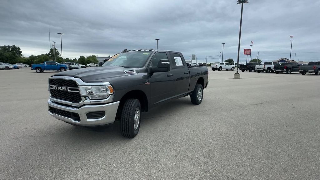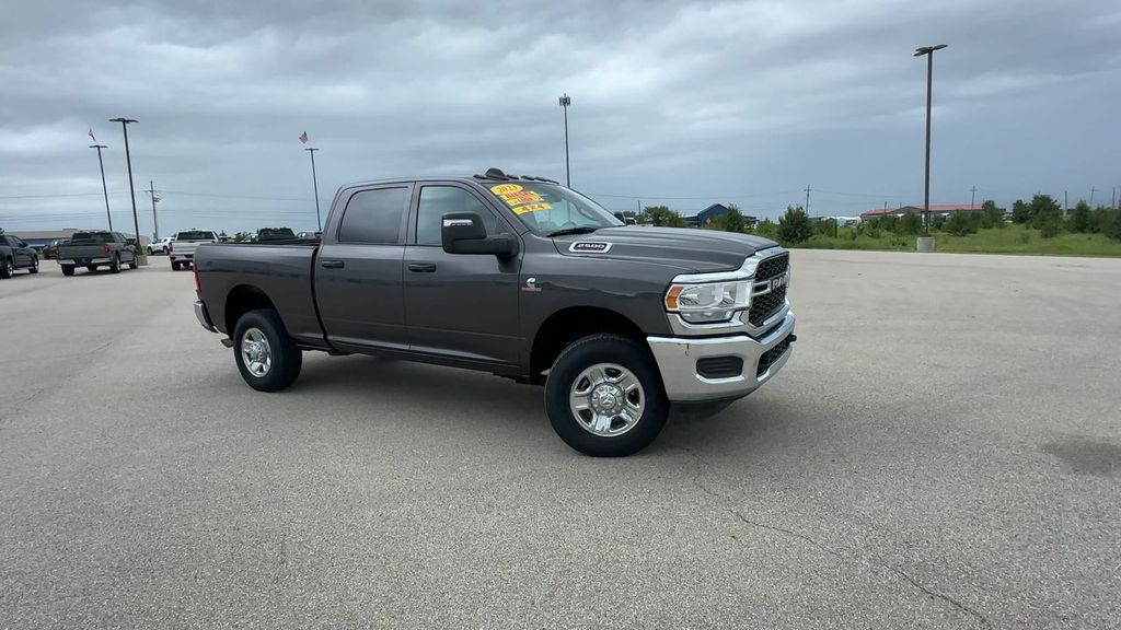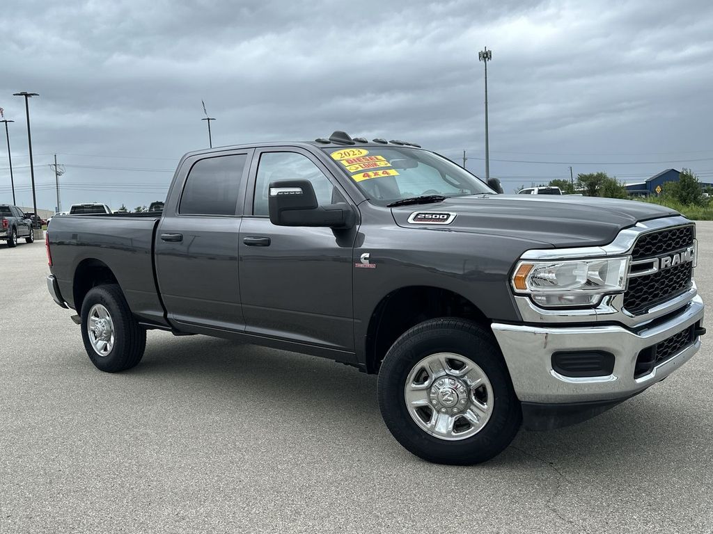 Great Value!!, 2500 Tradesman, 4D Crew Cab, Cummins 6.7L I6 Turbodiesel, 6-Speed Automatic, 4WD, Granite Crystal Metallic Clearcoat, Black w/Cloth 40/20/40 Bench Seat or Cloth 40/20/40 Bench Seat, 17" x 7.5" Steel Styled Wheels, 2 Way Rear Headrest Seat, 220 Amp Alternator, 3.73 Axle Ratio, 4 Way Front Headrests, 4-Wheel Disc Brakes, 40/20/40 Split Bench Seat, 4G LTE Wi-Fi Hot Spot, 6 Speakers, 8.4" Touchscreen Display, ABS brakes, Active Noise Control System, Air Conditioning, All R1 Low Radios, All Radio Equipped Vehicles, AM/FM radio, Anti-Spin Differential Rear Axle, Apple CarPlay, Auto Power-Folding Mirrors, Black Exterior Mirrors, Bluetooth Handsfree Phone & Audio, Brake assist, Bright Front Bumper, Bright Rear Bumper, Carpet Floor Covering, Center Hub, Chrome Appearance Group, Chrome Grille Surround, Chrome Headlamp Bezels, Clearance Lamps, Cloth 40/20/40 Bench Seat, Compass, Connectivity - US/Canada, Delay-off headlights, Driver door bin, Dual Alternators Rated At 440 Amps, Dual front impact airbags, Dual front side impact airbags, Electronic Stability Control, Electronically Controlled Throttle, Emergency communication system: SiriusXM Guardian, Exterior Mirrors Courtesy Lamps, Exterior Mirrors w/Heating Element, Exterior Mirrors w/Supplemental Signals, For Details, Visit DriveUconnect.com, For More Info, Call 800-643-2112, Forward & Reverse Utility Lights, Front & Rear Floor Mats, Front anti-roll bar, Front Armrest w/Cupholders, Front Center Armrest w/Storage, Front reading lights, Fully automatic headlights, Global Telematics Box Module (TBM), Google Android Auto, GPS Antenna Input, Heavy Duty Vinyl 40/20/40 Split Bench Seat, Illuminated entry, Integrated Center Stack Radio, Integrated Voice Command w/Bluetooth, Low tire pressure warning, Manual Adjust 4-Way Driver Seat, Manual Adjust 4-Way Front Passenger Seat, Manual Folding Exterior Mirrors, Manual Telescoping Mirrors, Matte Black Mesh Grille w/Chrome, Mirror Running Lights, Occupant sensing airbag, Outside temperature display, Overhead airbag, Overhead console, ParkView Rear Back-Up Camera, Passenger door bin, Passenger vanity mirror, Power Adjust Mirrors, Power Adjustable Convex Aux Mirrors, Power Heated Fold Telescope Mirrors, Power Heated Folding Telescope Mirrors, Power steering, Power Telescoping Mirrors, Power windows, Protection Group, Quick Order Package 2HA Tradesman, Radio data system, Radio: Uconnect 3 w/5" Display, Radio: Uconnect 5 W w/8.4" Display, Rear anti-roll bar, Rear Folding Seat, Rear Power Sliding Window, Rear step bumper, Rear Window Defroster, Selectable Tire Fill Alert, SiriusXM Radio Service, SiriusXM Satellite Radio, Speed control, Storage Tray, Tachometer, Tilt steering wheel, Tip Start, Tow Hooks, Traction control, Tradesman Level 2 Equipment Group, Trailer Brake Control, Trailer Light Check, Variably intermittent wipers, Voltmeter, Wheels: 18" x 8.0" Steel Chrome Clad.