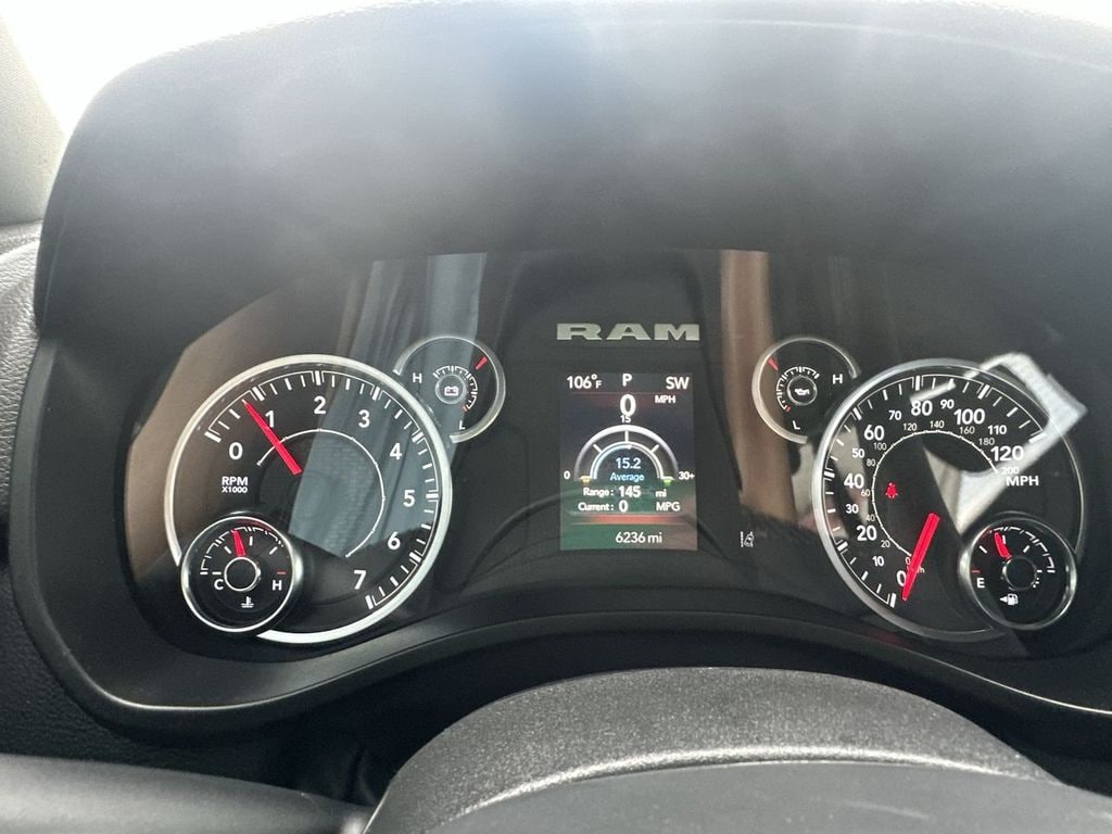 Bought Here Traded Here!!!!, LOW MILES!, 1500 Big Horn/Lone Star, 4D Crew Cab, 3.0L I6, 4WD, Diamond Black Crystal Pearlcoat, Diesel Gray/Black Cloth, 115V Auxiliary Power Outlet, 2nd Row In Floor Storage Bins, 3 Rear Seat Head Restraints, 3.55 Rear Axle Ratio, 33 Gallon Fuel Tank, 4 Way Front Headrests, 4-Wheel Disc Brakes, 400W Inverter, 4G LTE Wi-Fi Hot Spot, 6 Speakers, ABS brakes, Air Conditioning, Alloy wheels, AM/FM radio, Anti-Spin Differential Rear Axle, Apple CarPlay/Android Auto, Auto High-beam Headlights, Auto Power-Folding Mirrors, Auto-Dimming Exterior Driver Mirror, Auto-Dimming Rear-View Mirror, Big Horn Level 1 Equipment Group, Black Exterior Mirrors, Black Premium Power Mirrors, Brake assist, Bumpers: chrome, Cloth Bench Seat, Compass, Connectivity - US/Canada, Convex Wide-Angle Exterior Mirror Insert, Delay-off headlights, Driver door bin, Dual front impact airbags, Dual front side impact airbags, Electronic Stability Control, Exterior Mirrors Courtesy Lamps, Exterior Mirrors w/Heating Element, Exterior Mirrors w/Supplemental Signals, Front anti-roll bar, Front Center Armrest w/Storage, Front fog lights, Front License Plate Bracket, Front reading lights, Front Seat Back Map Pockets, Front wheel independent suspension, Fully automatic headlights, Glove Box Lamp, GPS Antenna Input, Heated door mirrors, Heated Front Seats, Heated Steering Wheel, Illuminated entry, Integrated Voice Command w/Bluetooth, Leather Wrapped Steering Wheel, Low tire pressure warning, Manual Adjust 4-Way Front Passenger Seat, Manual Folding Exterior Mirrors, MOPAR Front & Rear Rubber Floor Mats, Occupant sensing airbag, Outside temperature display, Overhead airbag, Overhead console, Panic alarm, ParkView Rear Back-Up Camera, Passenger door bin, Passenger vanity mirror, Power 2-Way Driver Lumbar Adjust, Power Adjust 8-Way Driver Seat, Power Adjustable Pedals, Power door mirrors, Power steering, Power windows, Quick Order Package 21Z Big Horn, Radio data system, Radio: Uconnect 5 W w/8.4" Display, RAM Grille Badge - Chrome, Rear 60/40 Folding Seat, Rear anti-roll bar, Rear Power Sliding Window, Rear seat center armrest, Rear step bumper, Rear Window Defroster, Remote keyless entry, Speed control, Split folding rear seat, Steering Wheel Mounted Audio Controls, Sun Visors w/Illuminated Vanity Mirrors, Supplier Part Tracking (J-1), Tachometer, Telescoping steering wheel, Tilt steering wheel, Traction control, Trailer Brake Control, Trip computer, Universal Garage Door Opener, USB Host Flip, Variably intermittent wipers, Voltmeter, Wheels: 18" x 8" Cast-Aluminum Painted, Wheels: 20" x 9" Aluminum Chrome Clad (WRK).